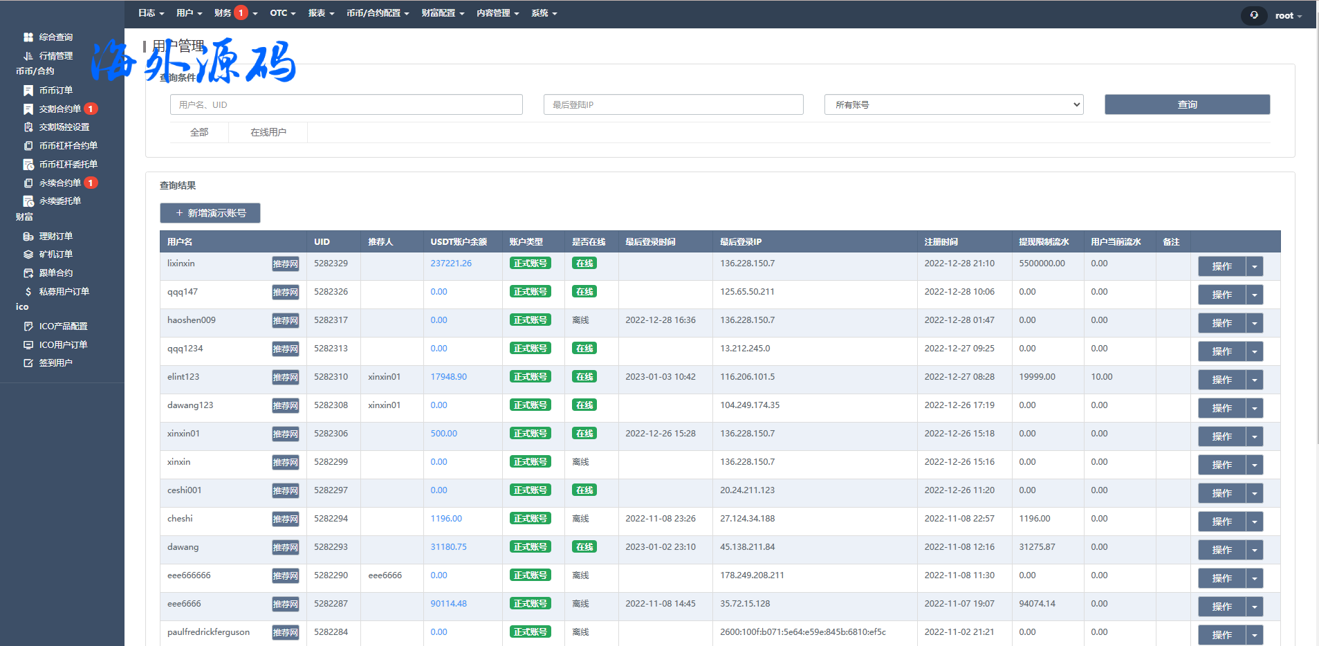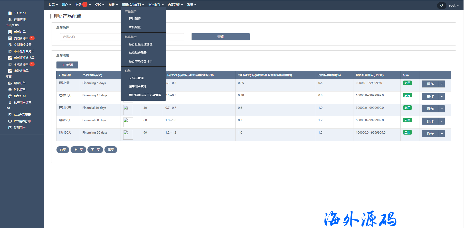 海外交易所系统/合约/期权/质押/秒合约/插针控制/申购