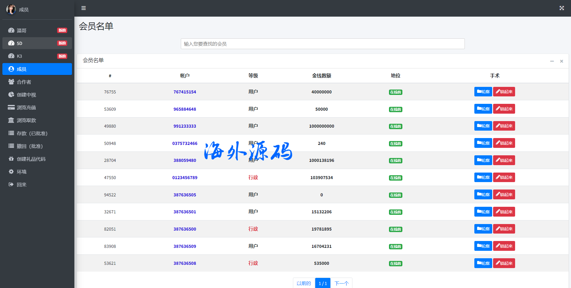 系统是针对越南本土开发的下注游戏带开奖控制,前后端均为越南语言