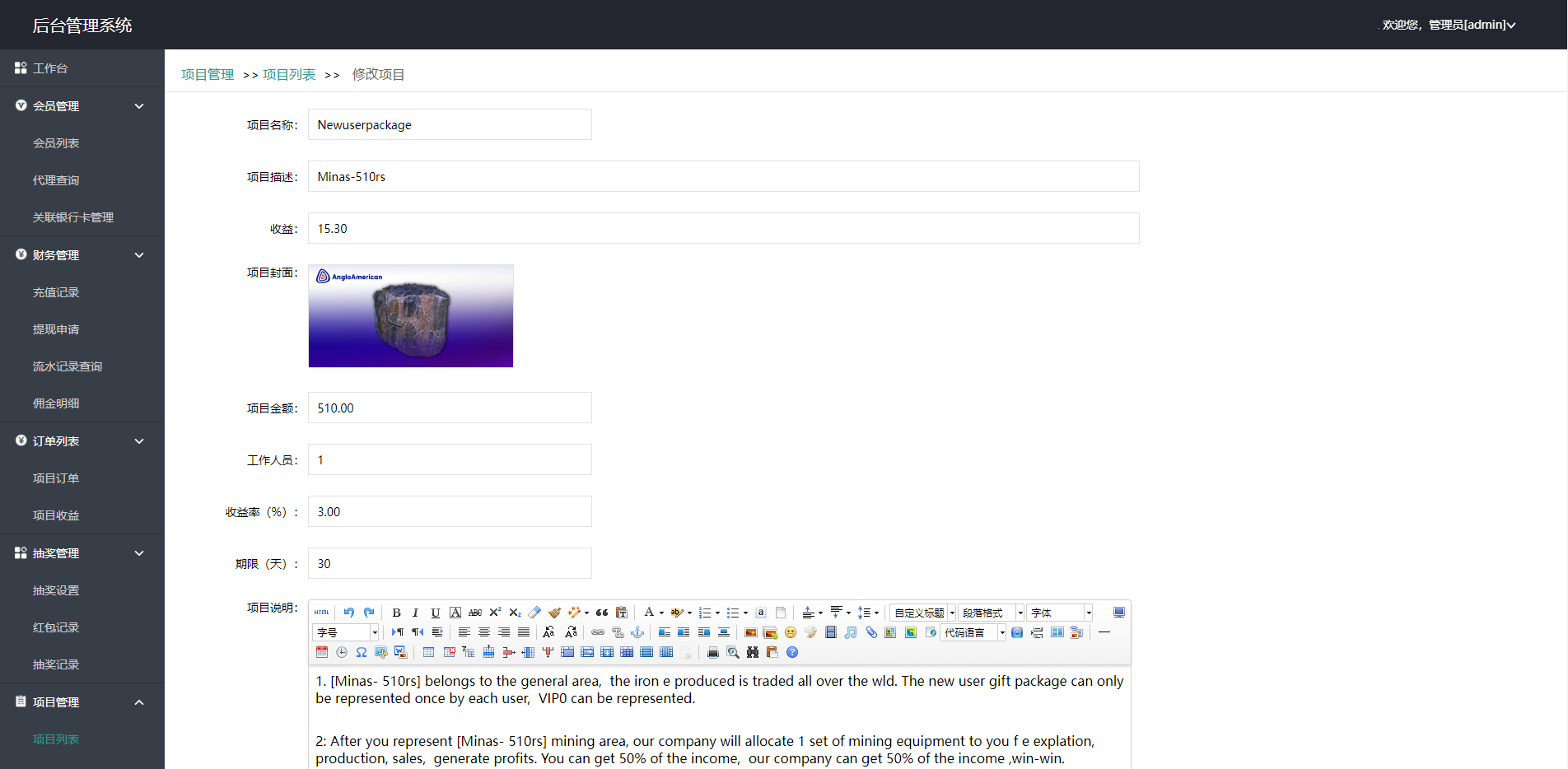 海外油田投资系统,后台产品可任意更改