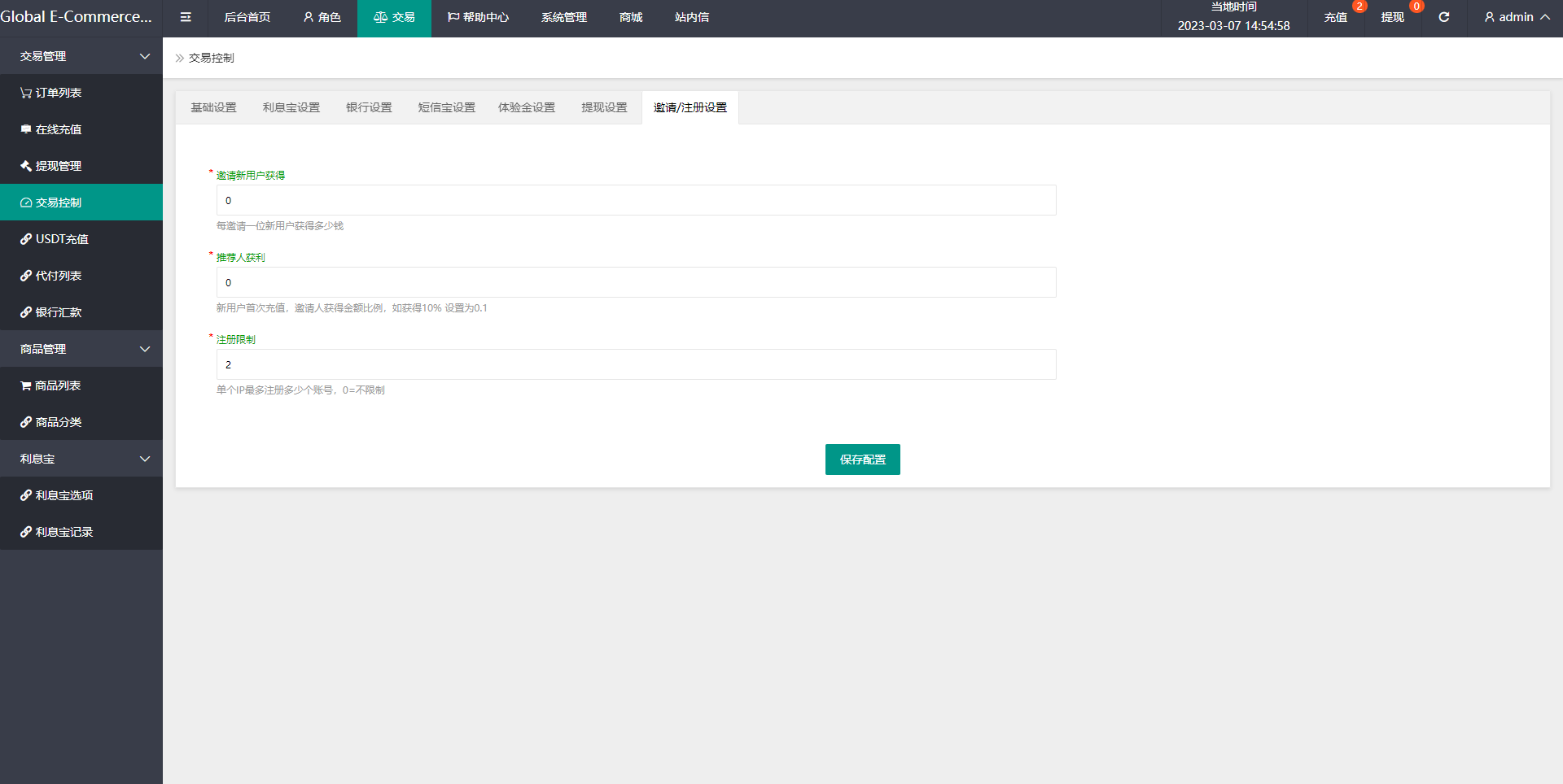IP注册限制、系统时区配置、站内消息公告群发等组多功能