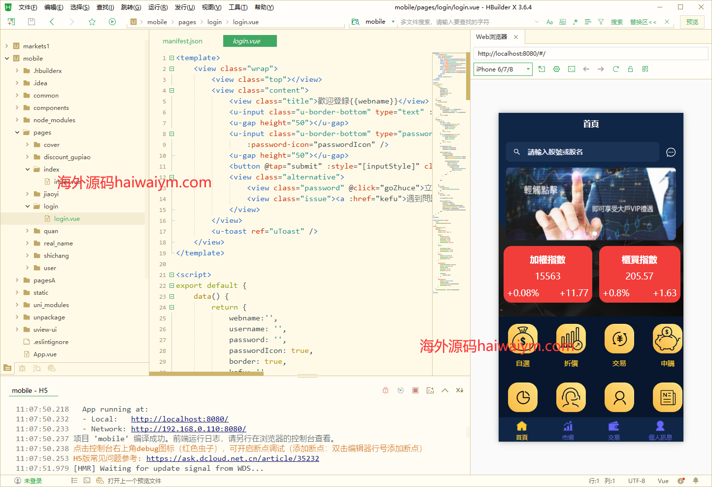 此套台湾股票系统属于全新开发前端是uinapp构造,后端是FastAdmin框架