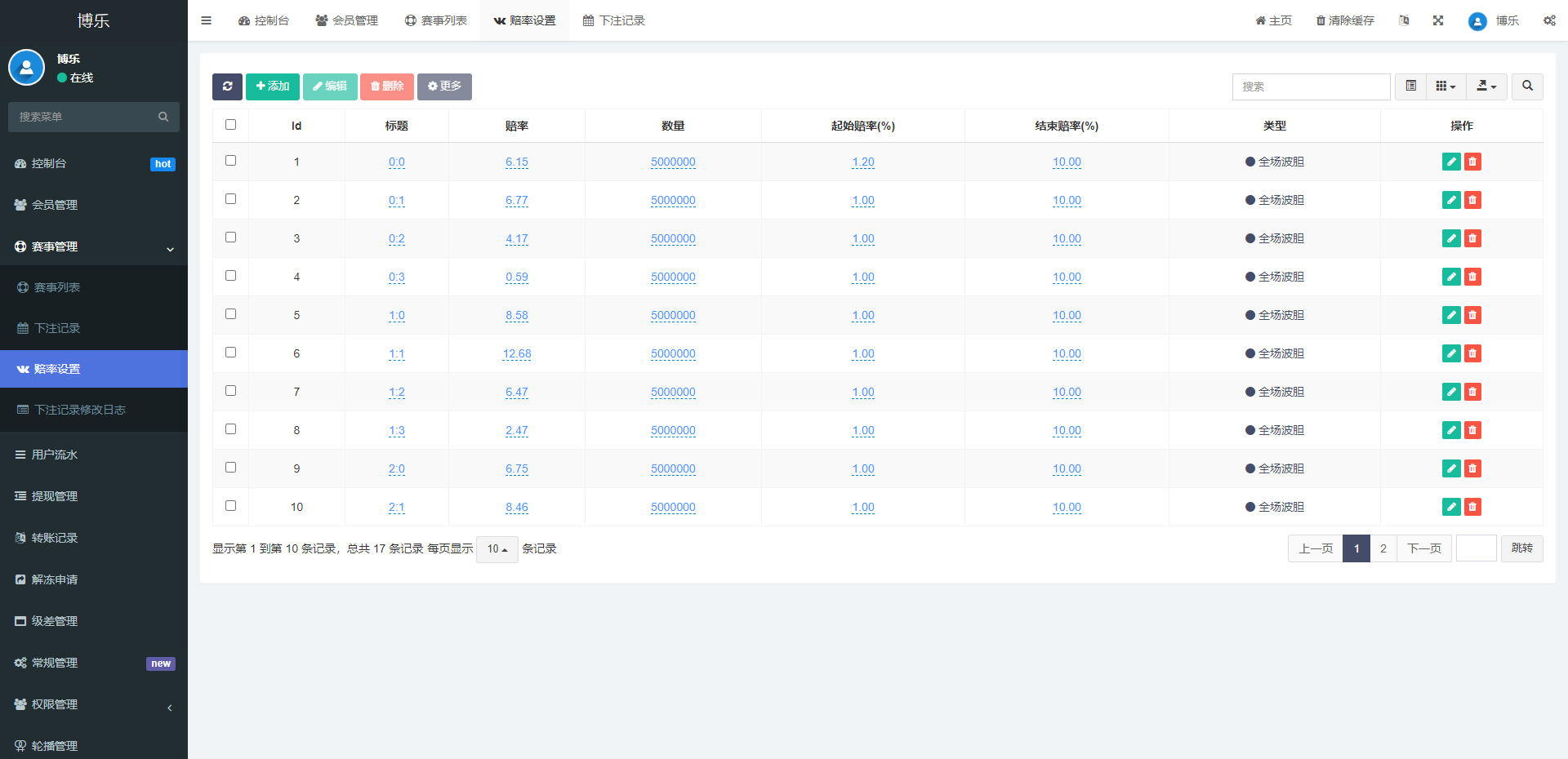 系统是FastAdmin框架开发的反波胆系统,前端是VUE带源码 会员互转等功能,默认对接的采集正常使用,开奖后台手动