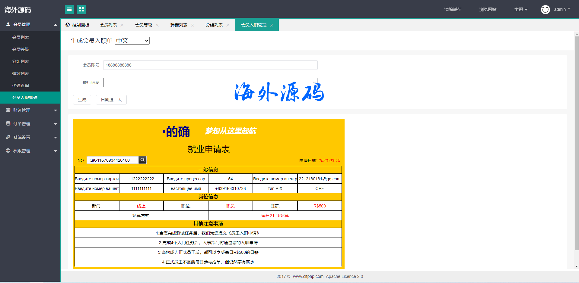 此套是别人二开的海外抢单系统,系统支持分组联单控制、入职生成、订单编辑续期解冻等功能