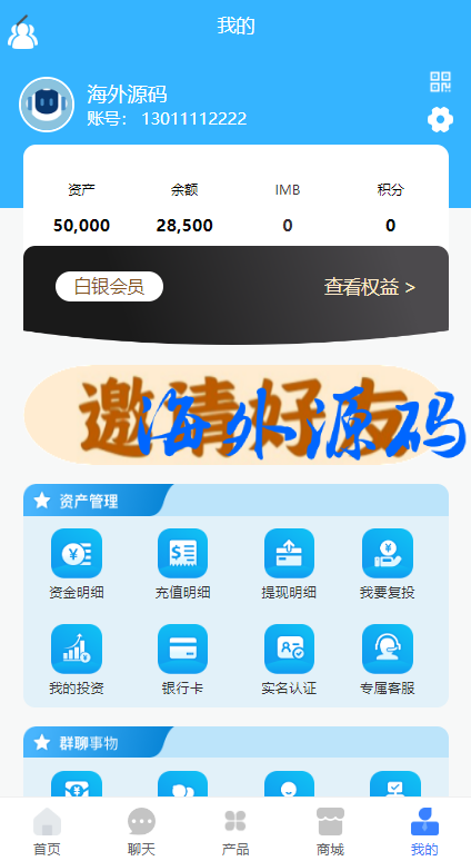 新版海外投资理财系统/多语言投资返利/IM社区/10级分销