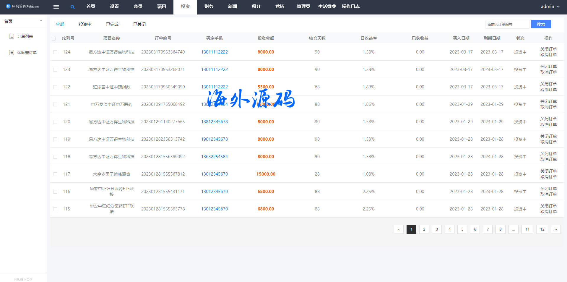 算是一套比较不错的下项目投资系统,系统是thinkPHP框架前端html的