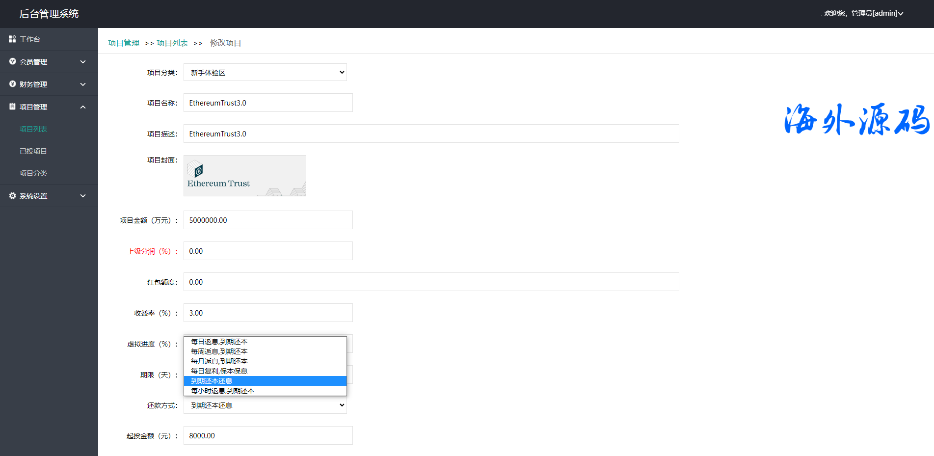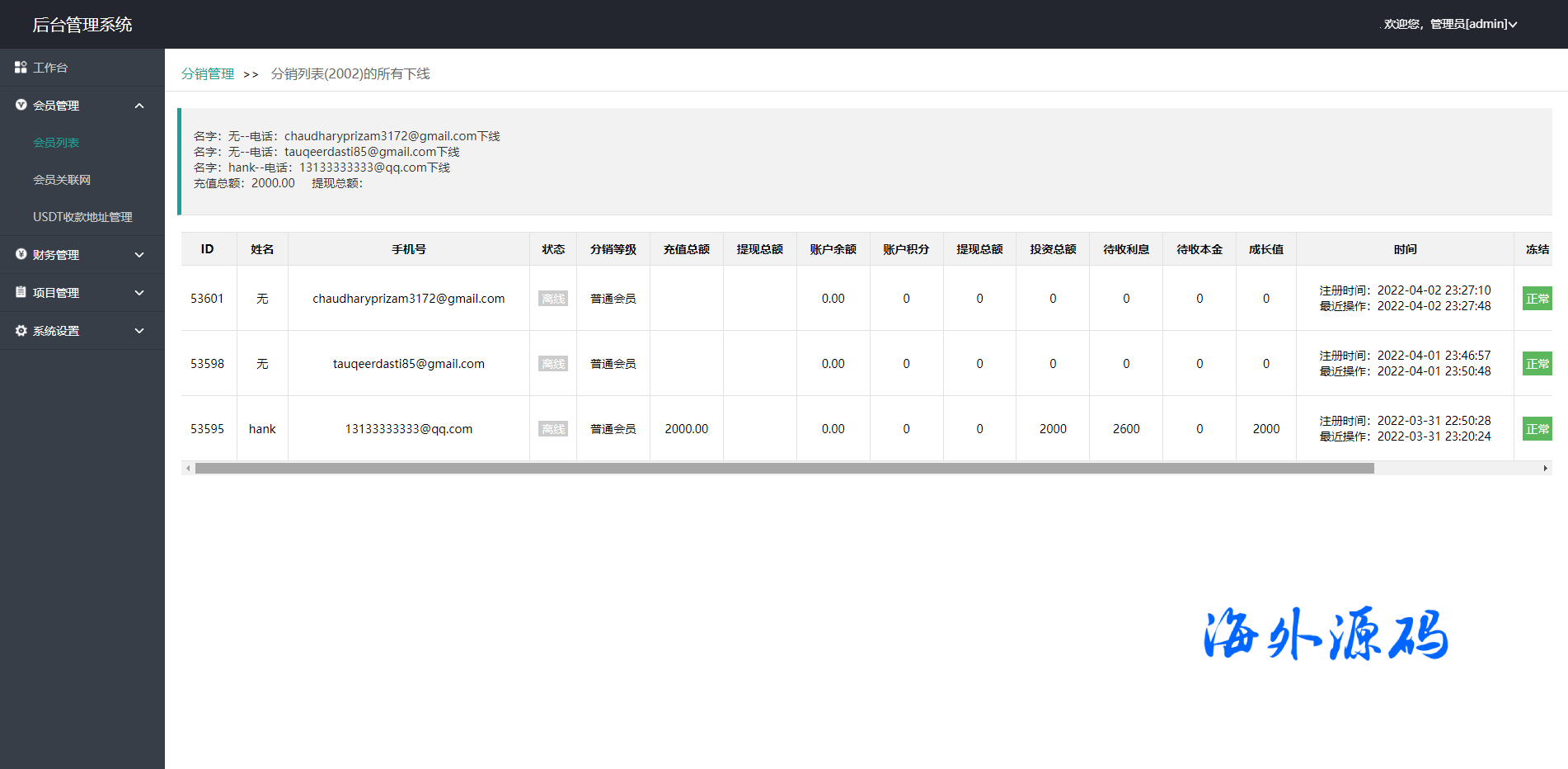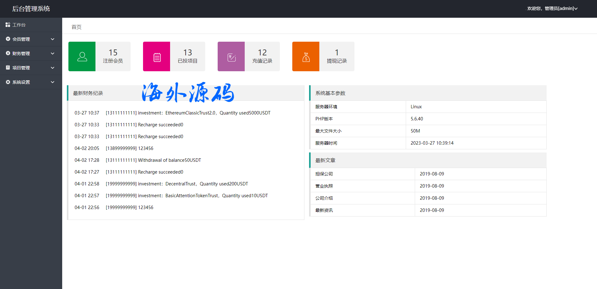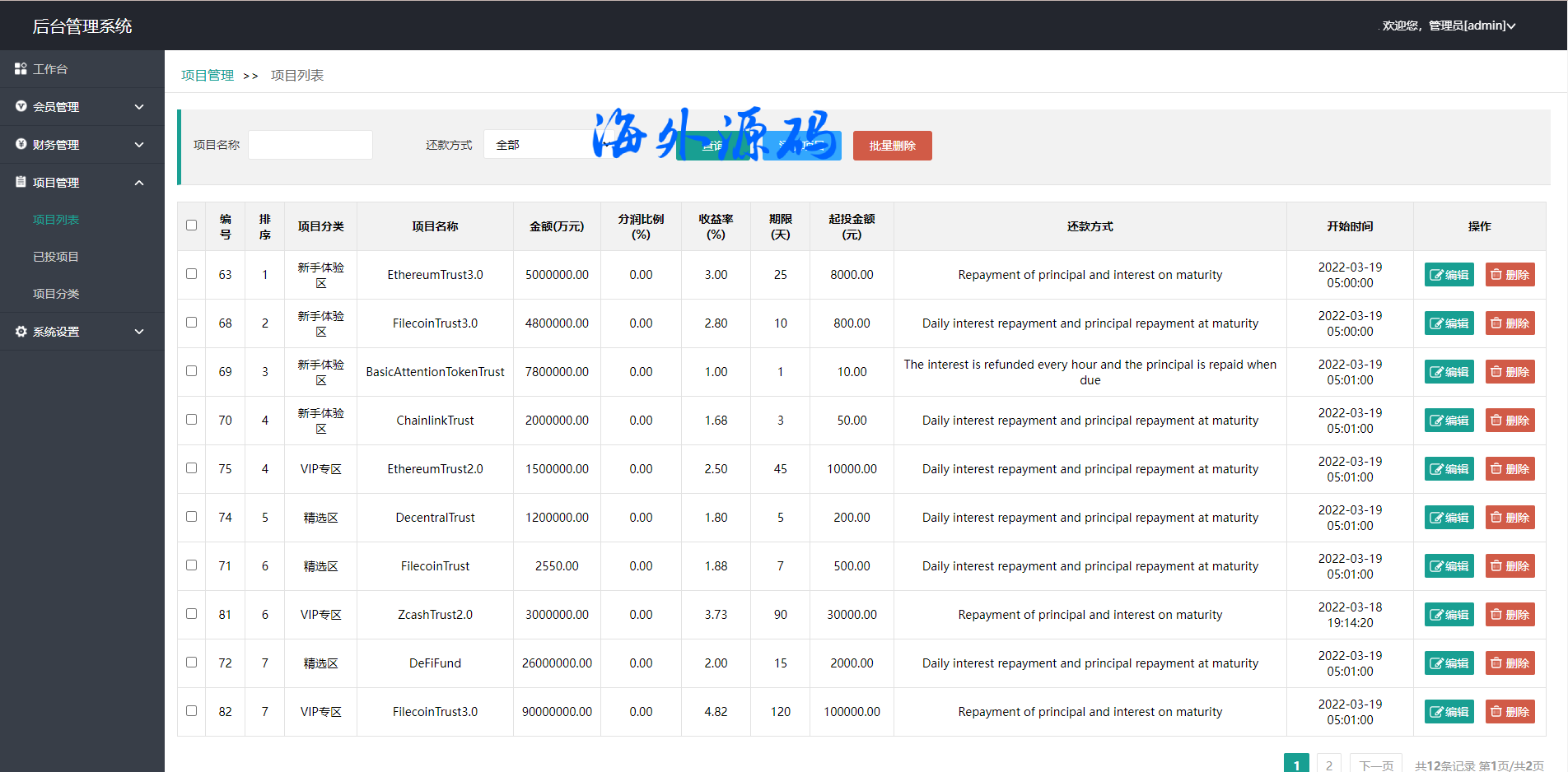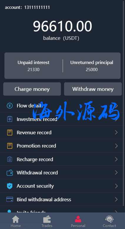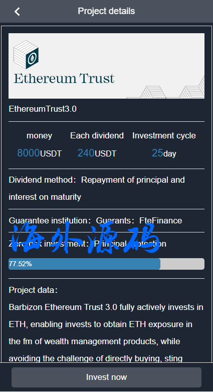 此套是以前客户运营下来的海外投资系统,前端产品可更改