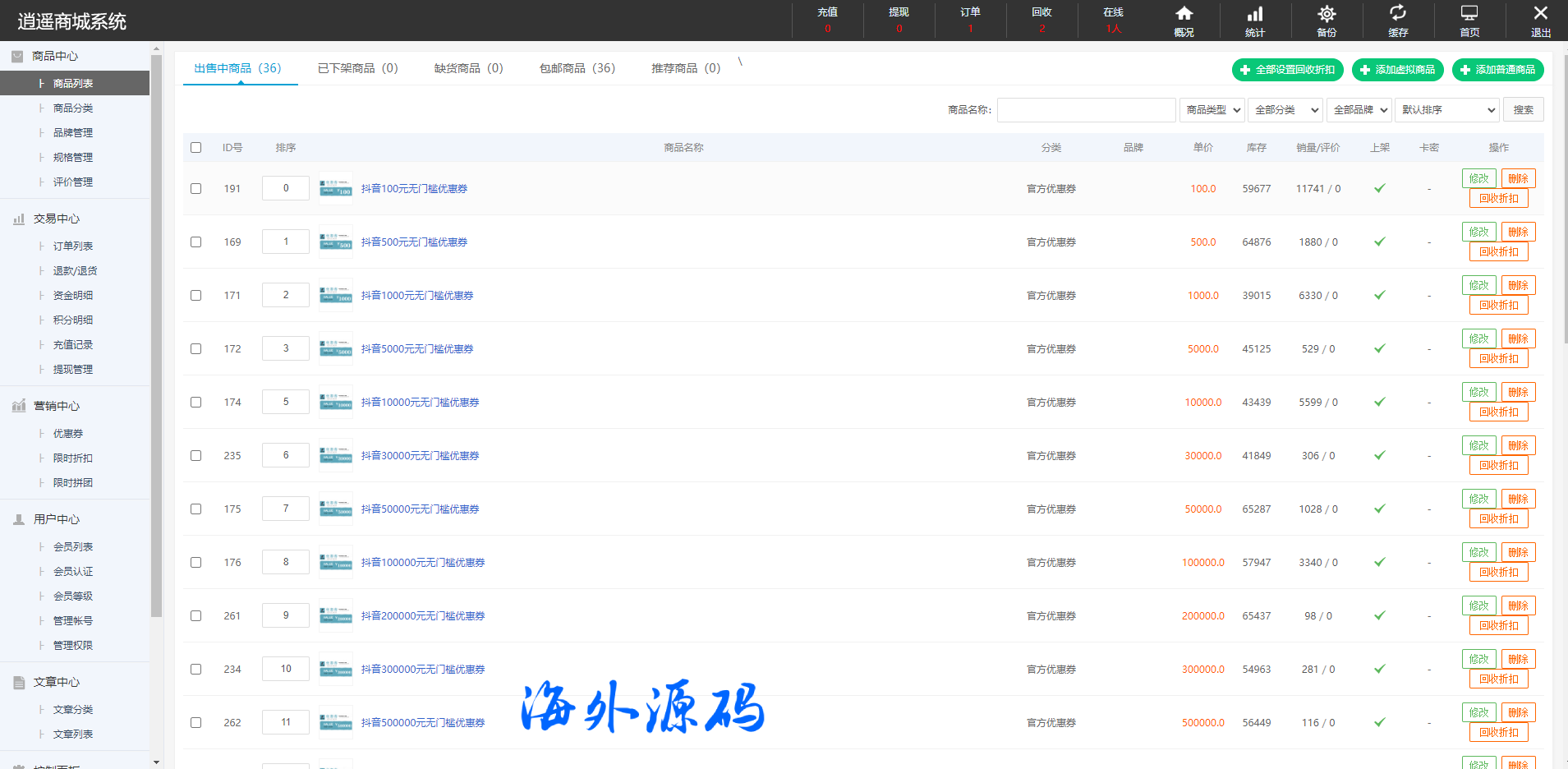 用户前端下单,后台订单可以直接回收,后台支持设置默认邀请码和抢卷时间限制