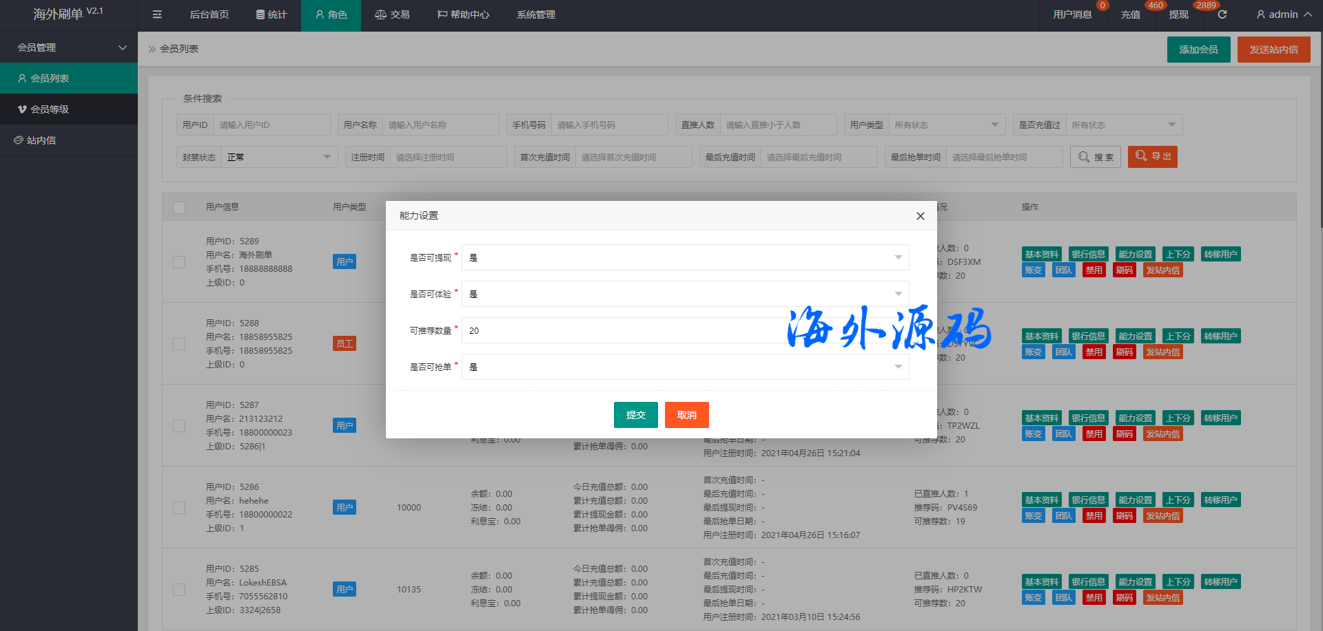 韩国抢单刷单系统/多语言刷单商城/打针/信用分/代理后台