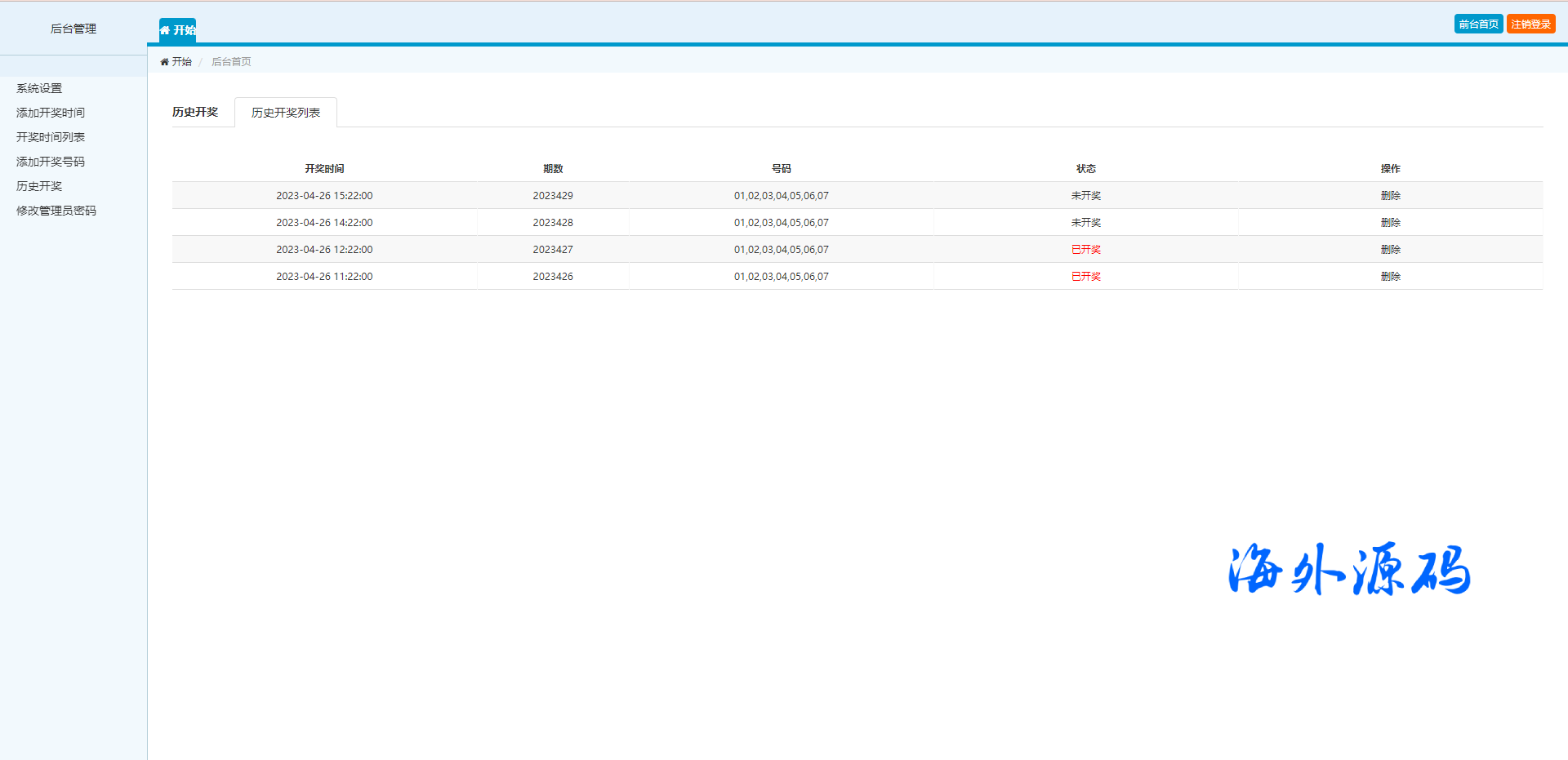 系统是澳门六合彩开奖网带开奖摇号视频,开奖的期数是自己后台手动添加的