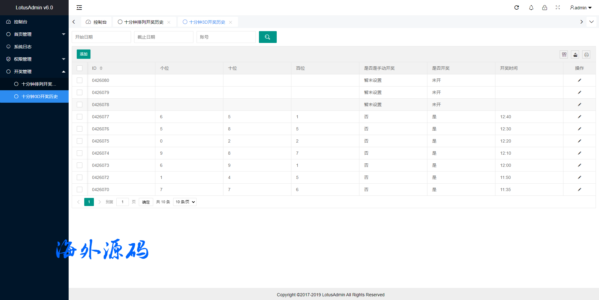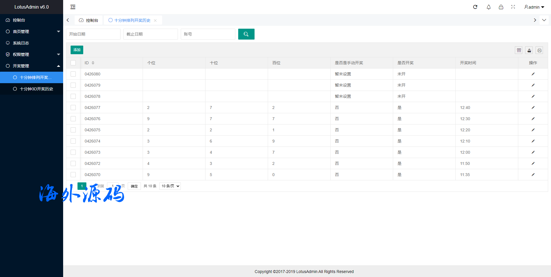 开奖号码自动采集的,也可以自己后台手动设置开奖信息