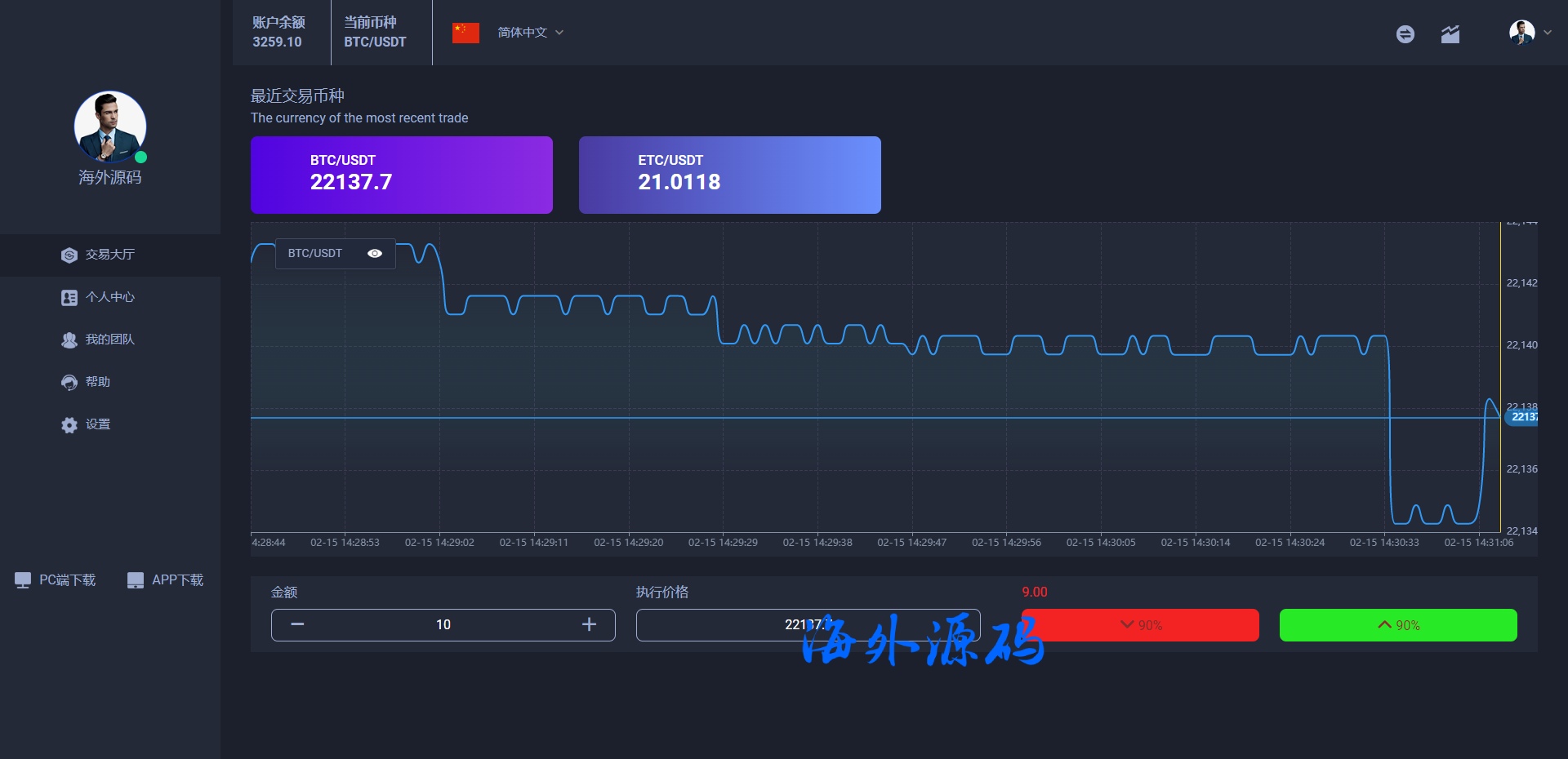 二开版虚拟币微交易系统/伪交易所系统/代理后台/余额宝微盘源码