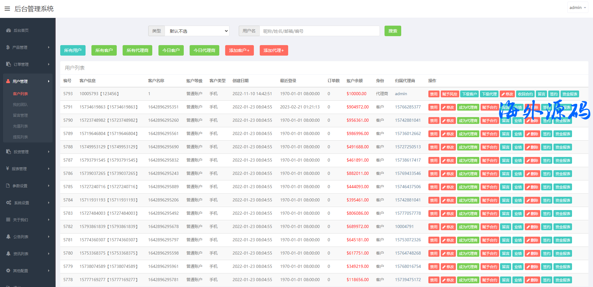 源码前端三种语言:中文、英文、葡萄牙语,系统自带客服系统、理财投资、推广等功能
