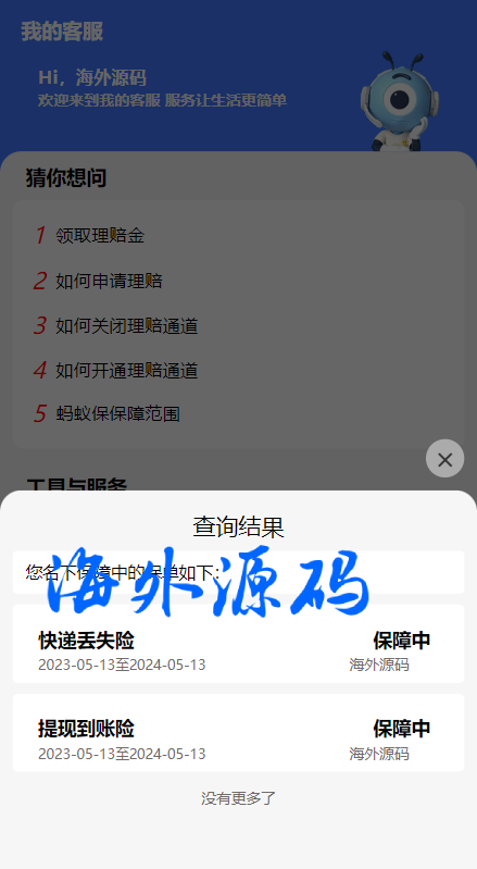 一款支付宝理赔系统,每个用户可单独设置客服跟理赔选项内容