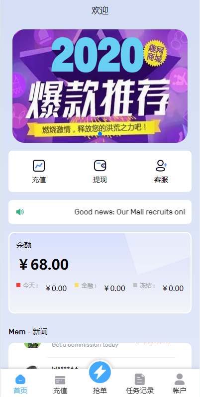 韩国抢单刷单系统/多语言刷单商城/打针/信用分/代理后台