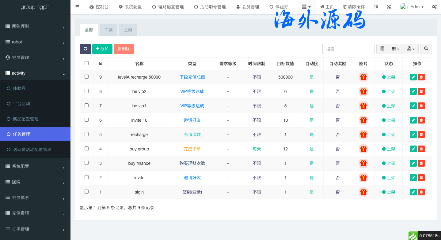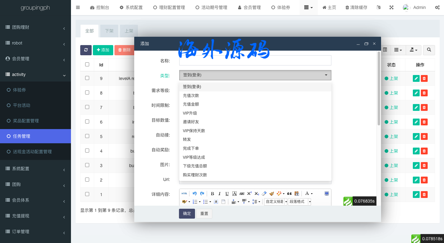 一套海外的拼团回购投资理财系统,前端英文跟印地语