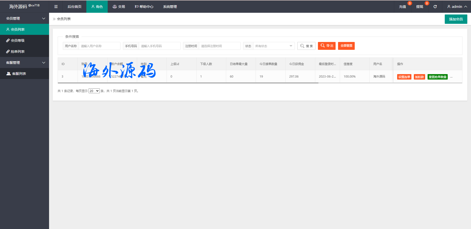 韩国抢单刷单系统/多语言刷单商城/打针/信用分/代理后台
