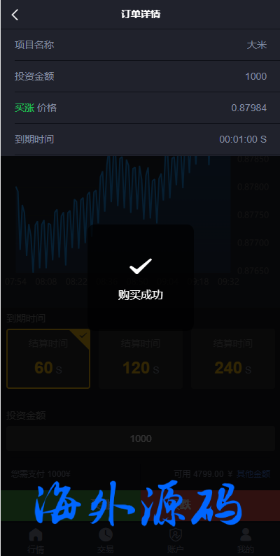 新版海外微交易系统/泰国虚拟币微盘/秒合约系统/前端uniapp