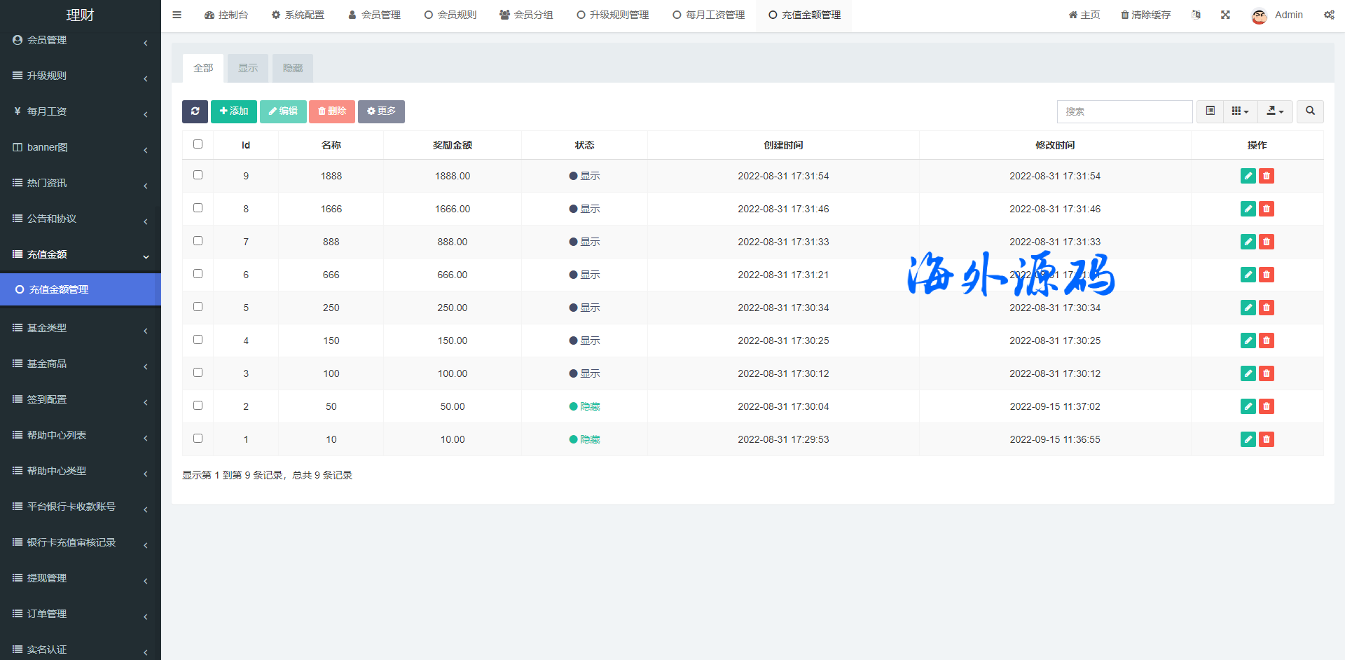前端使用vue开发贷源码,后端使用FastAdmin框架
