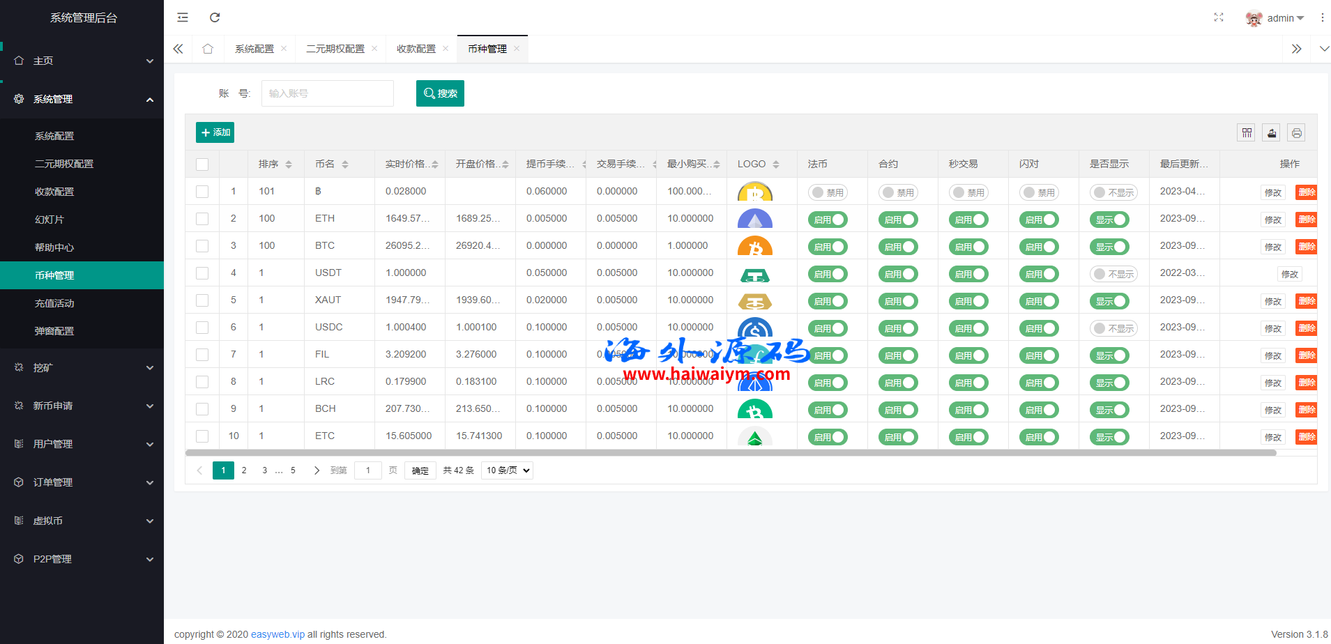多语言虚拟币交易系统/秒合约交易/伪交易所/时间盘