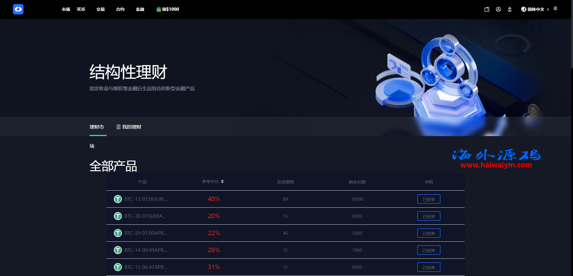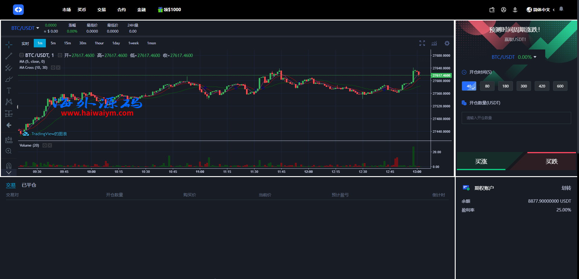 海外多语言交易所/合约/期权/秒合约/插针控制/申购