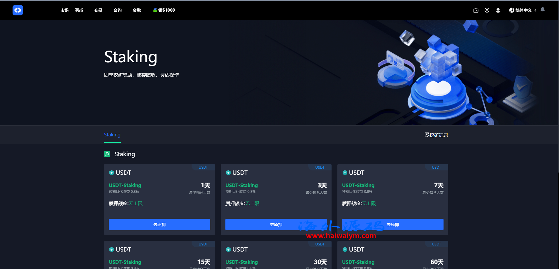 海外交易所系统/永续合约交割合约/K线控制/质押理财