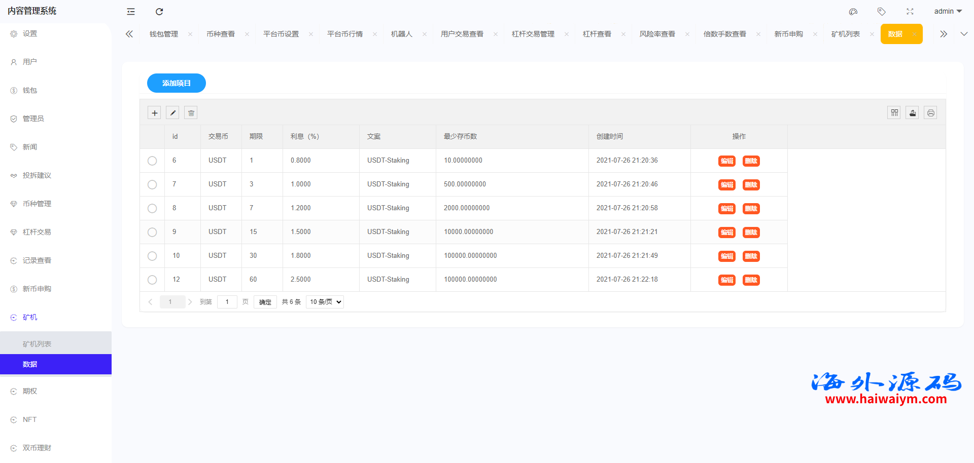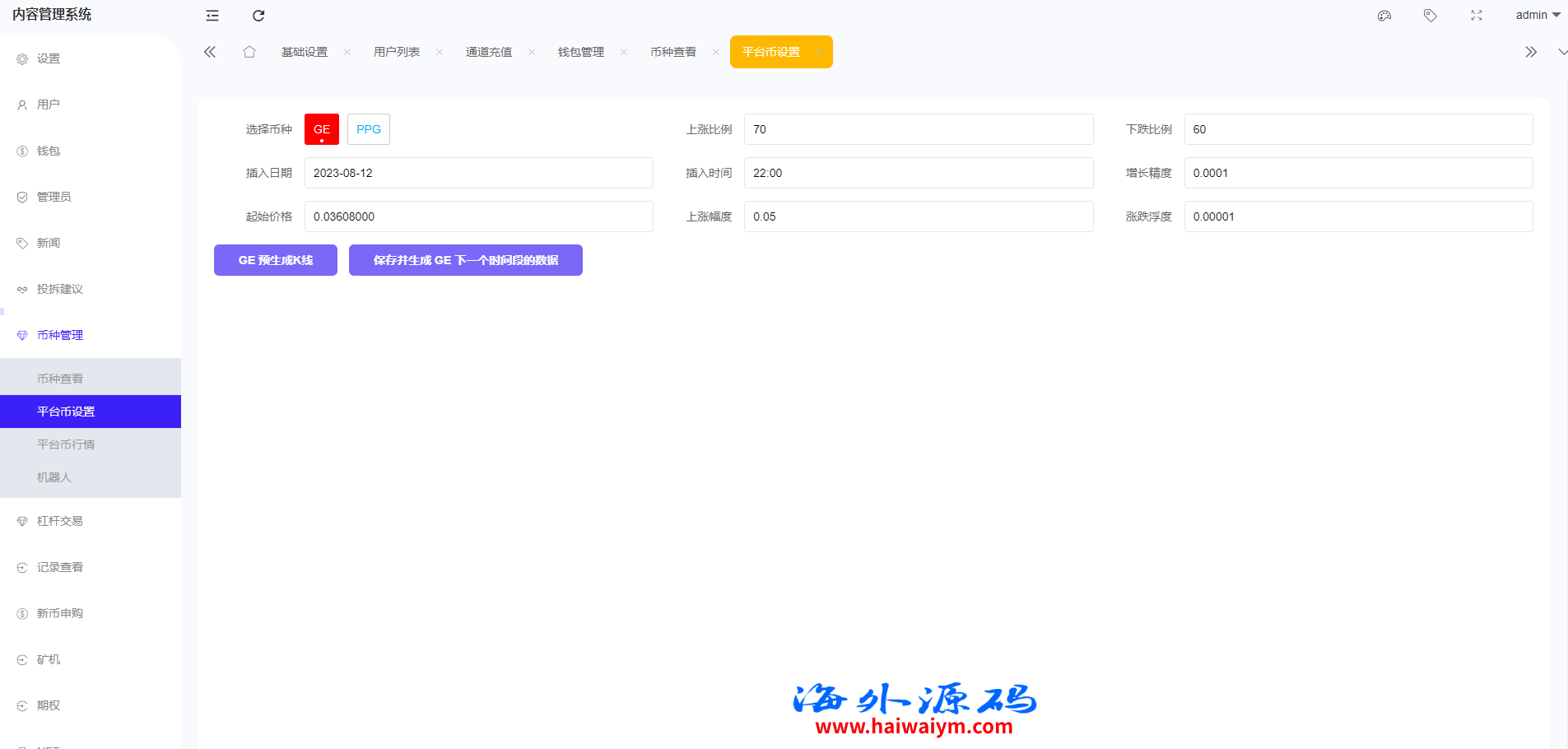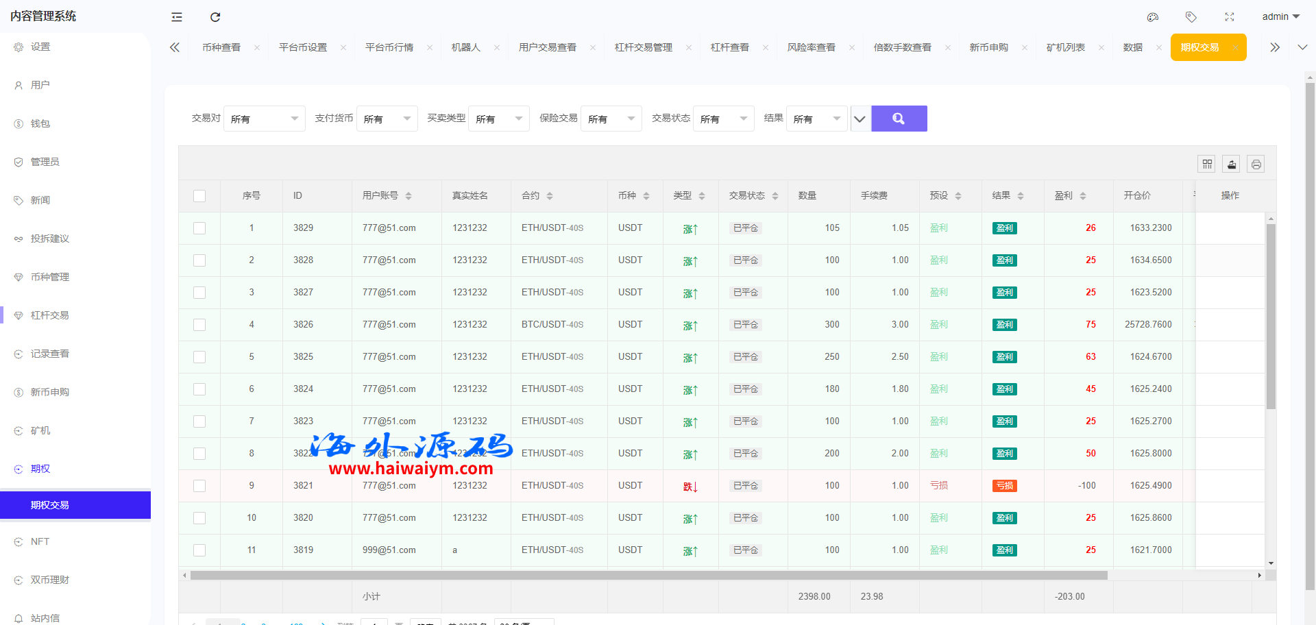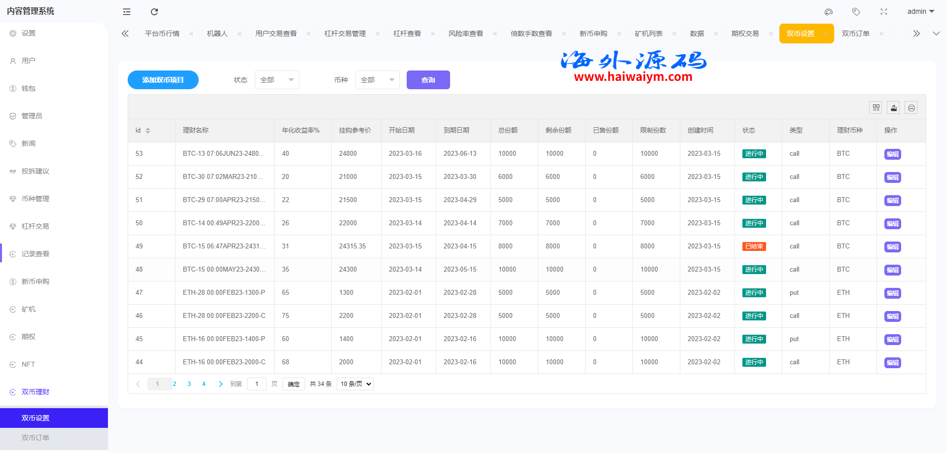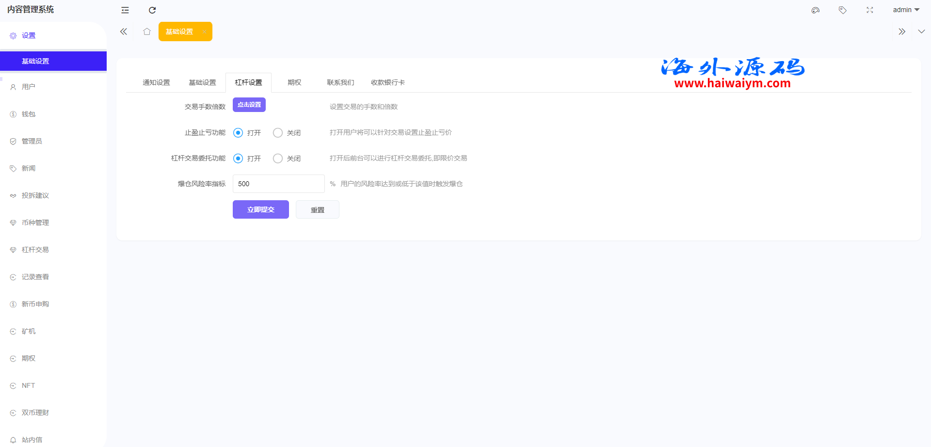 海外交易所系统/合约/期权/质押/秒合约/插针控制/申购