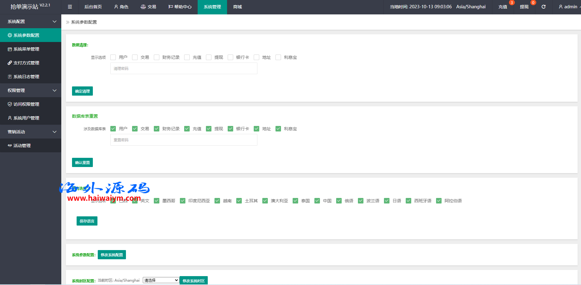 系统支预约爆单、叠加组、余额宝、时区设置等功能