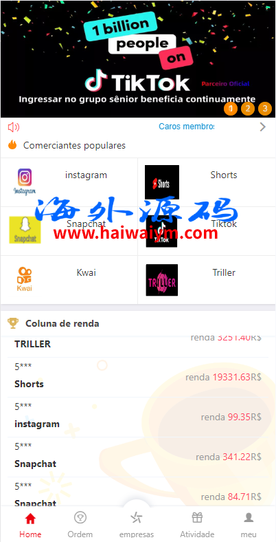 系统前端是单葡萄牙语言的伪商城刷单系统,带代理后台跟预设