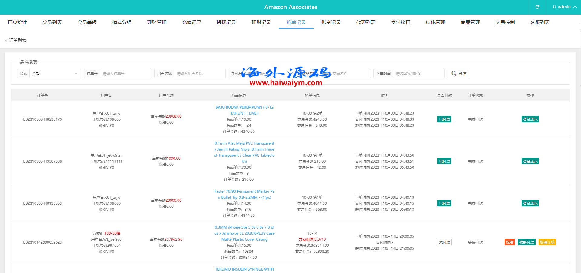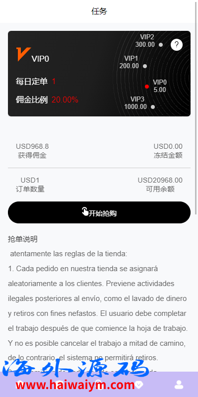 海外商城抢单刷单系统/预设订单/重置订单/签到