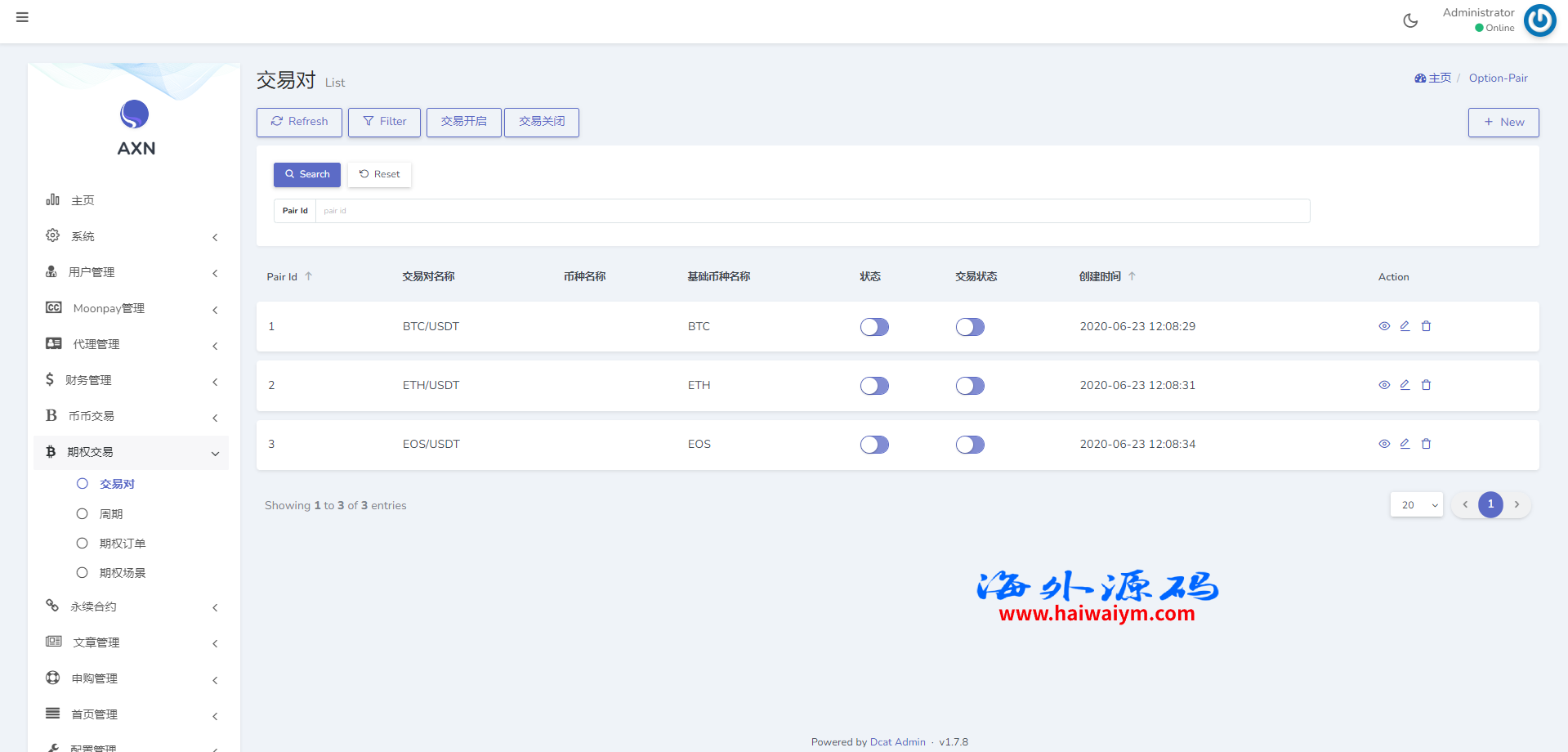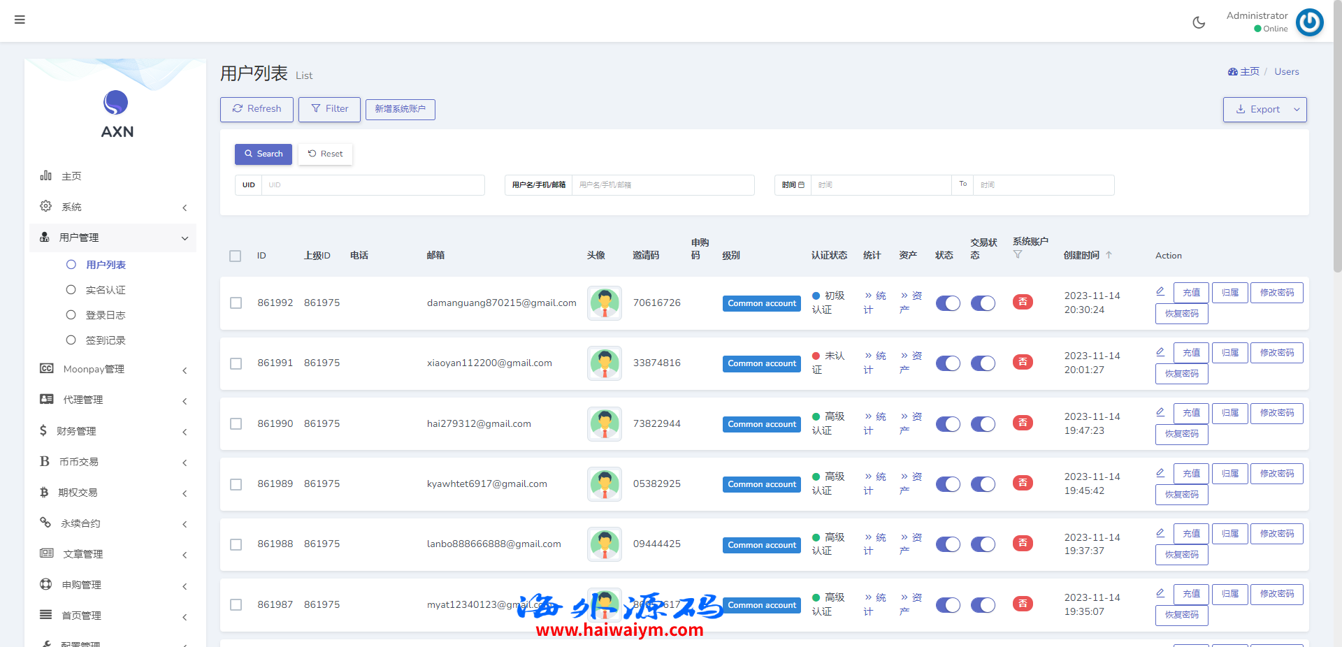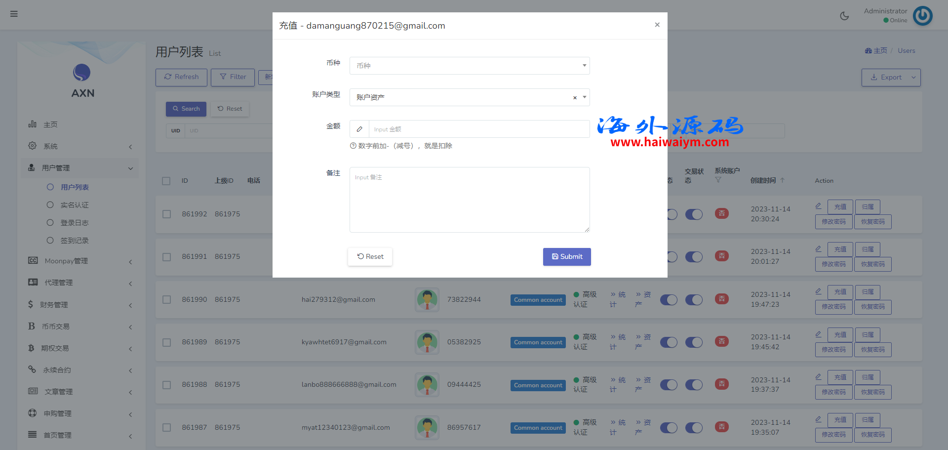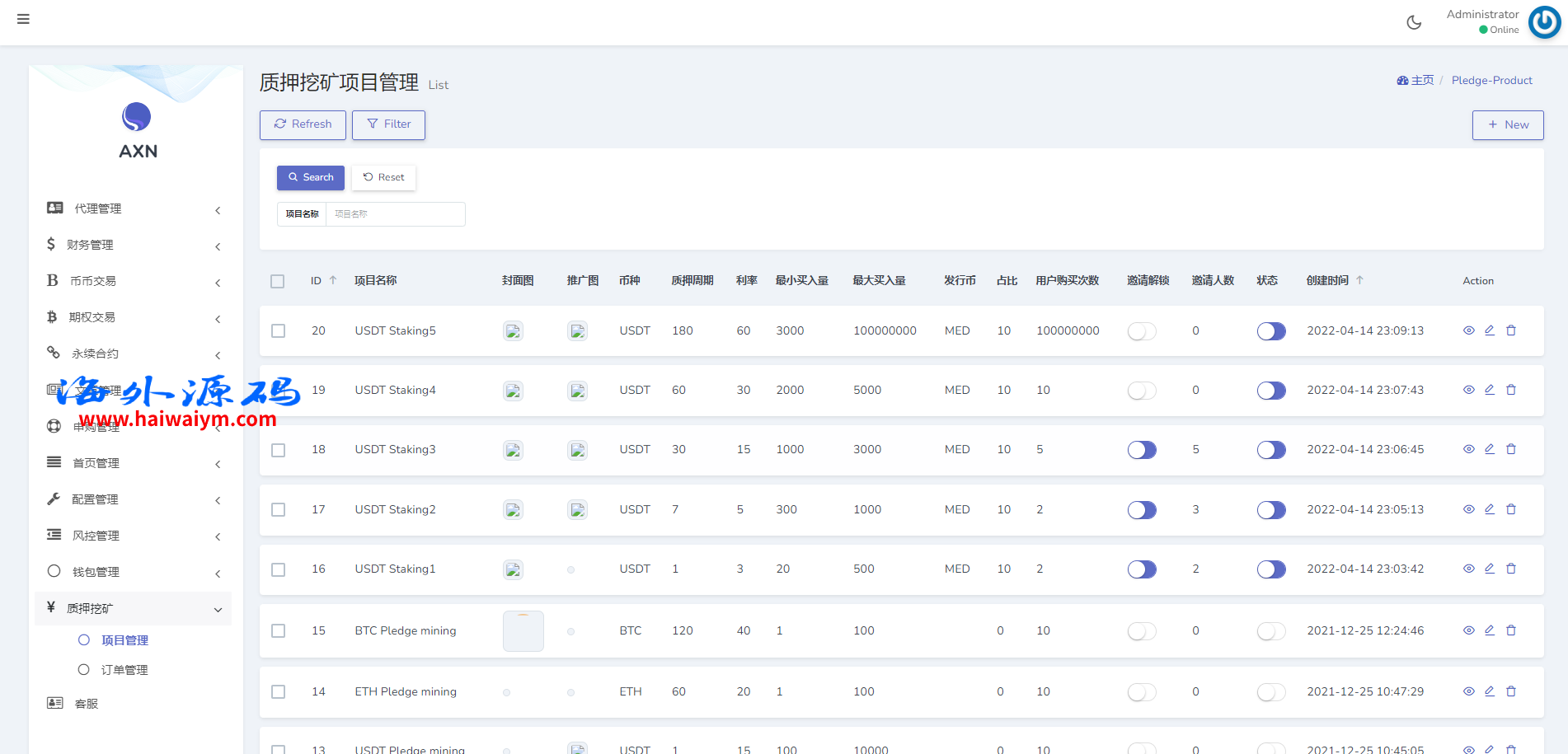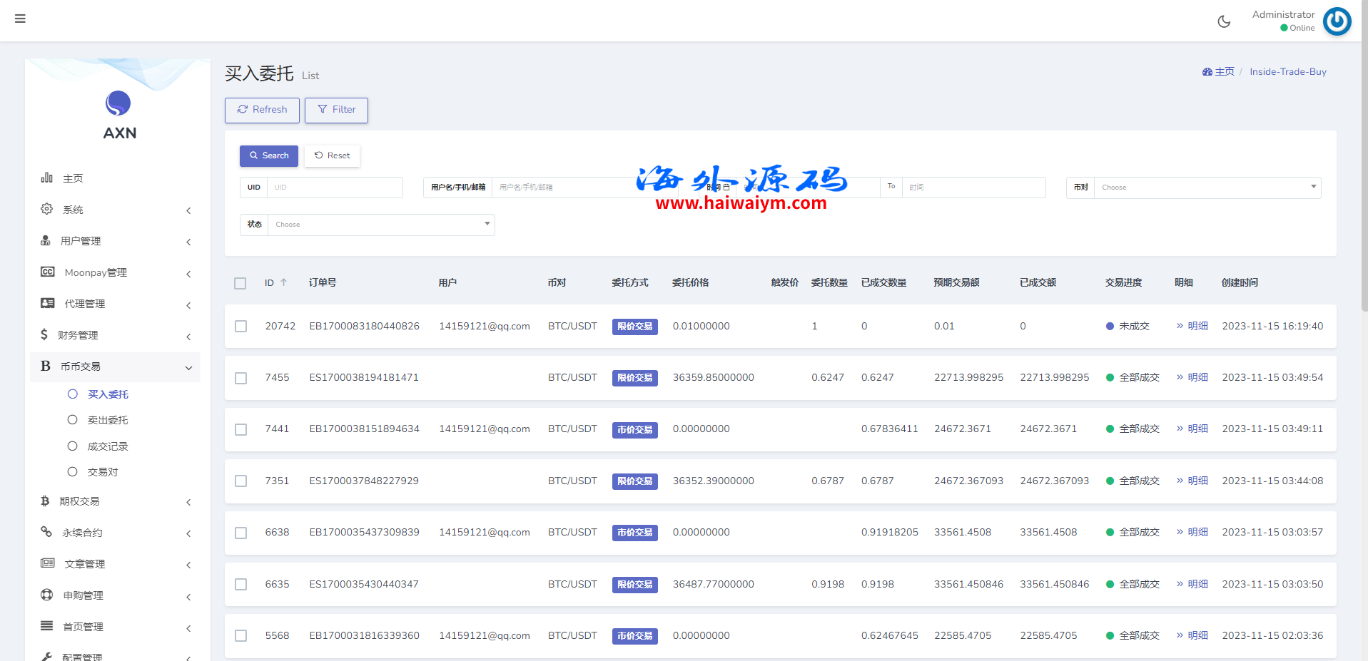 海外交易所系统/合约/期权/质押/秒合约/插针控制/申购
