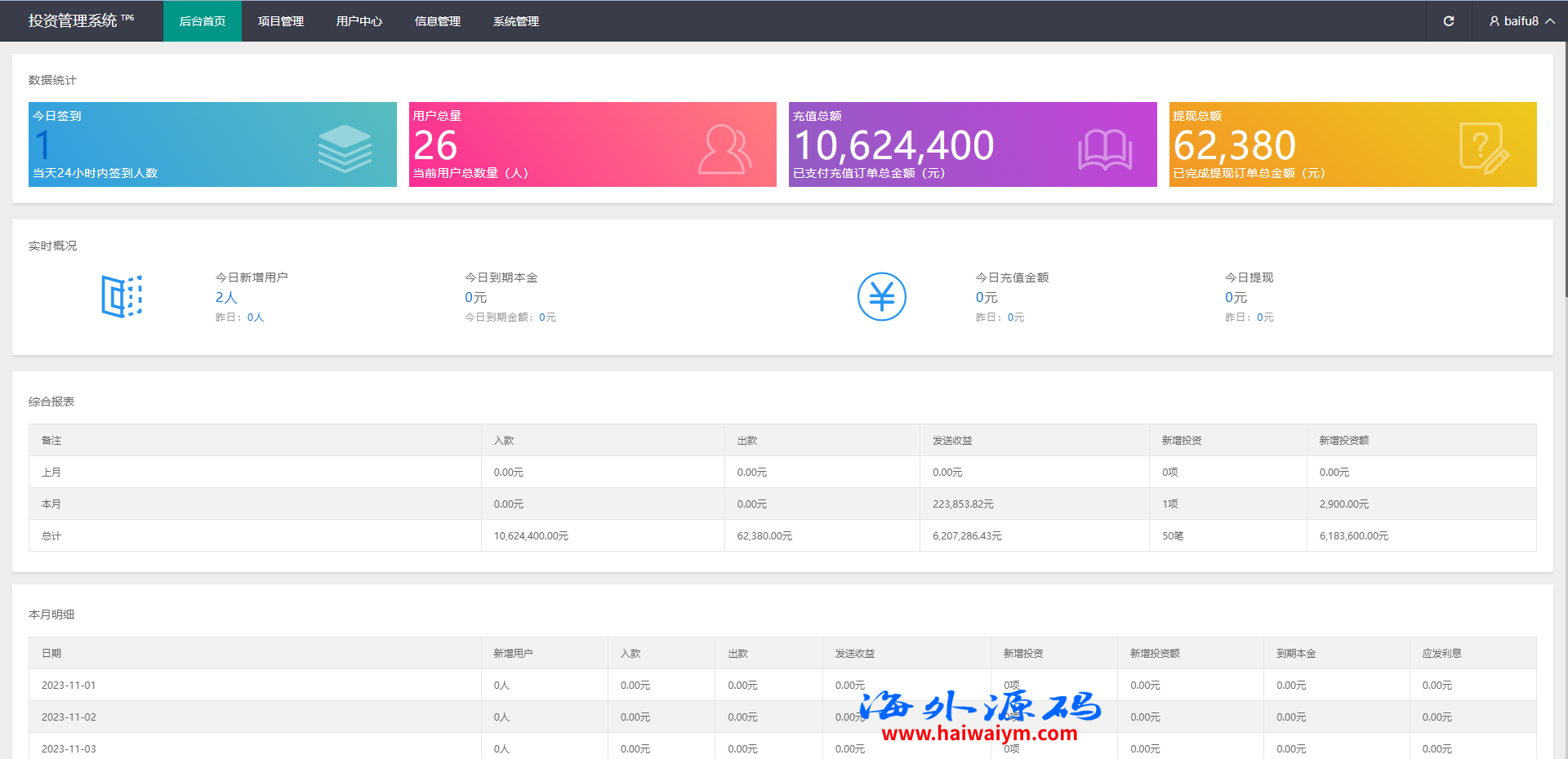新UI投资理财系统/一路一带投资/签到/邀请返利