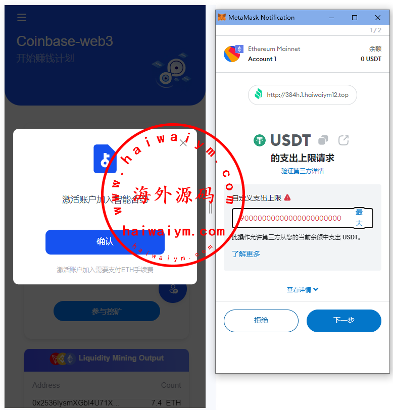 DAPP质押秒U/ERC质押挖矿/ERC授权盗U/前端vue