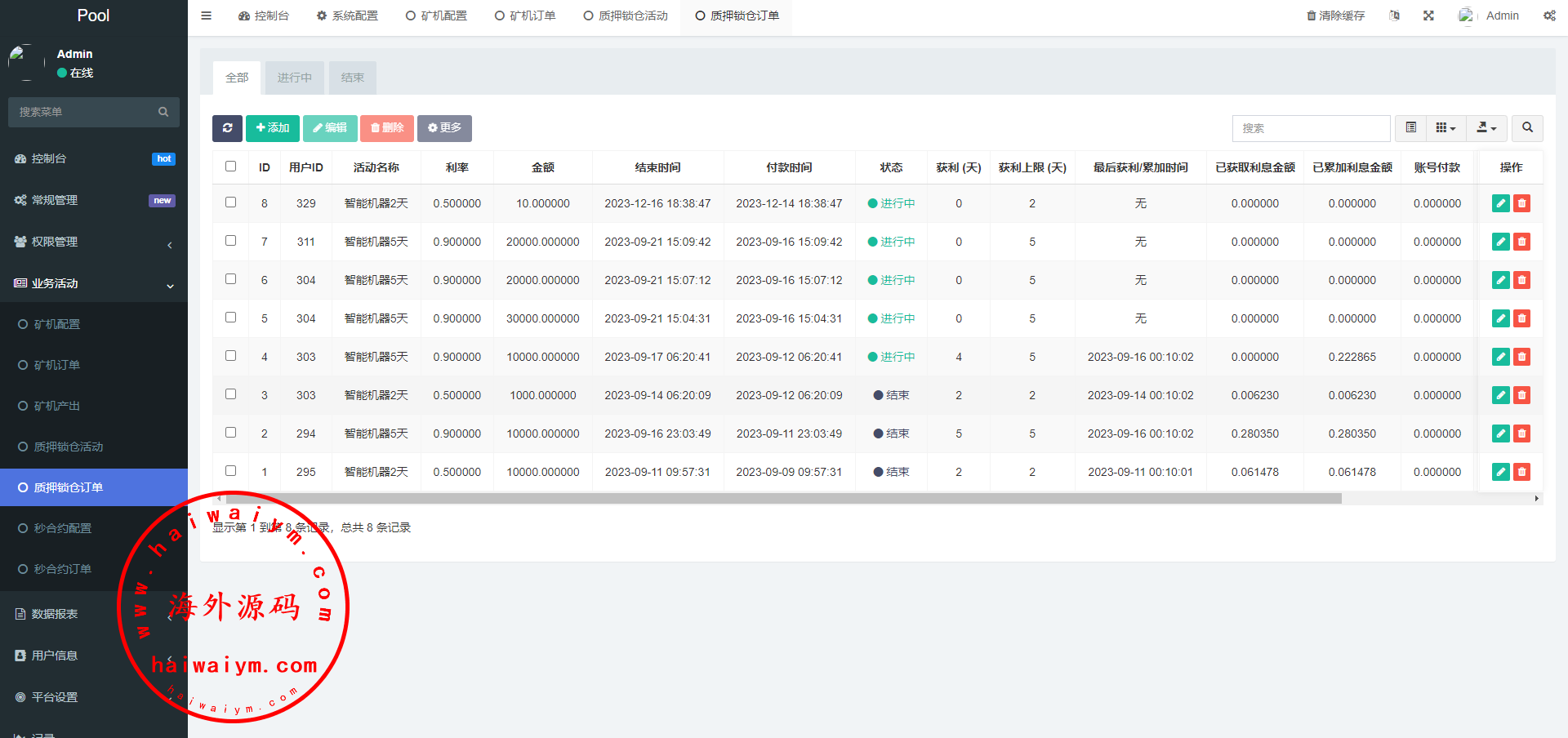 前端二开去除秒合约,只保留质押挖矿授权功能,后台完善提币功能