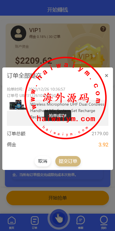 海外商城抢单刷单系统/预设订单/重置订单/签到