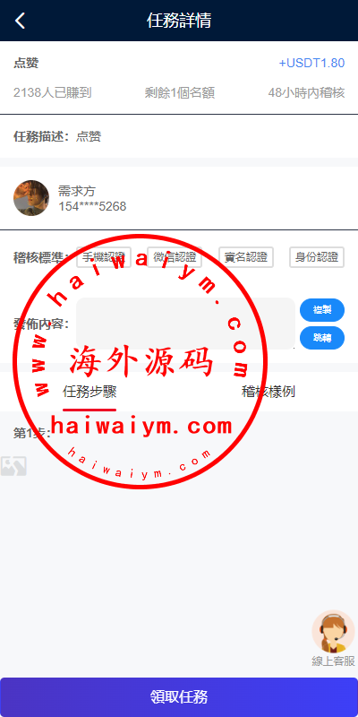 ②、领取任务,提交截图上传审核
