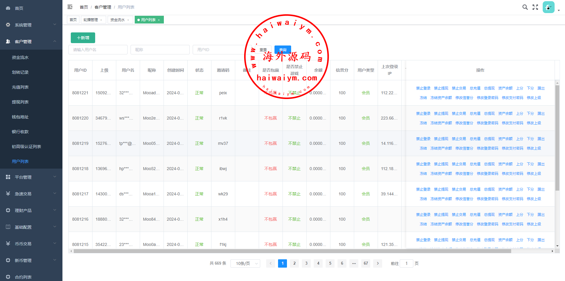 海外交易所系统/合约/期权/质押/秒合约/插针控制/申购