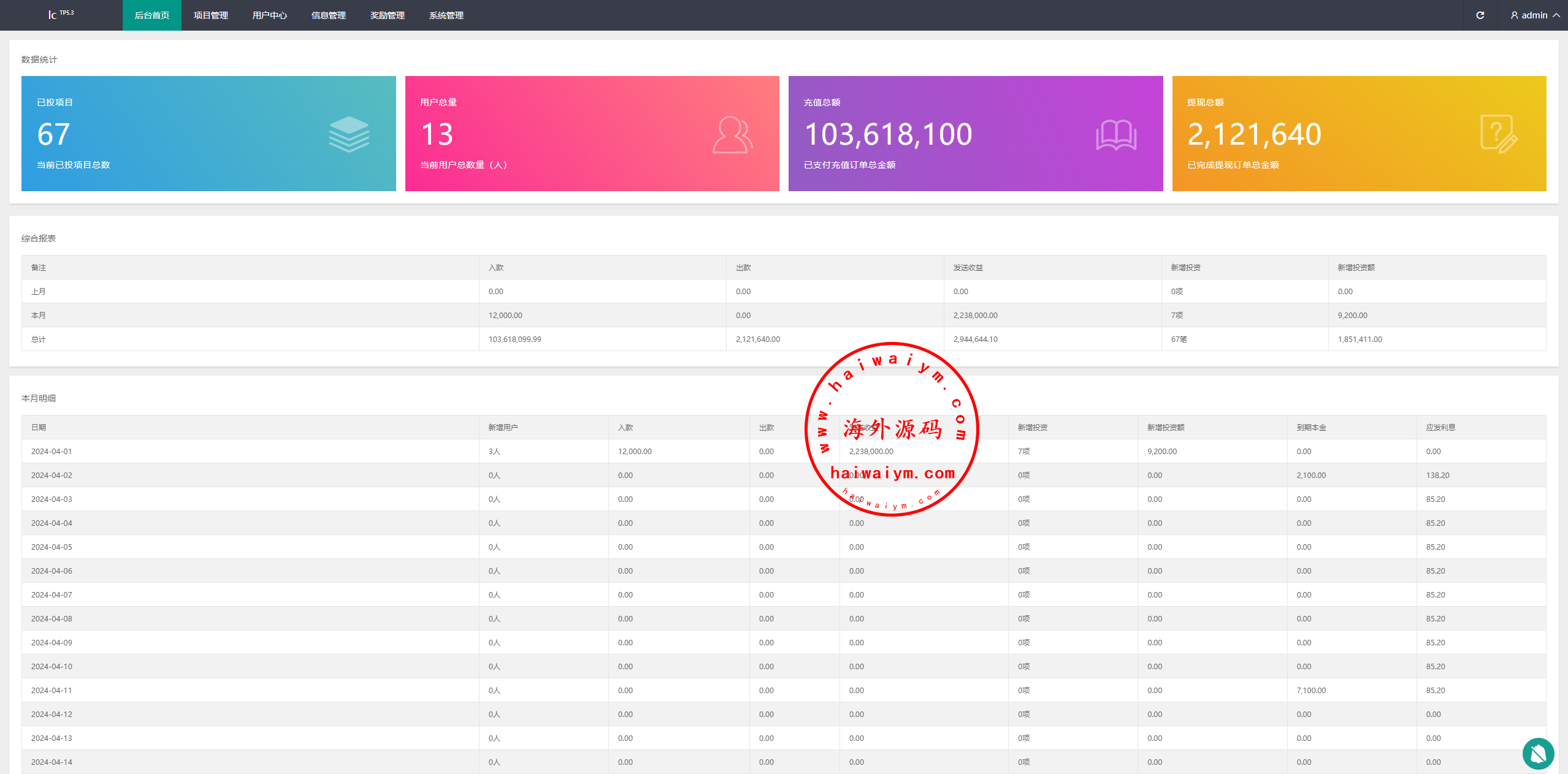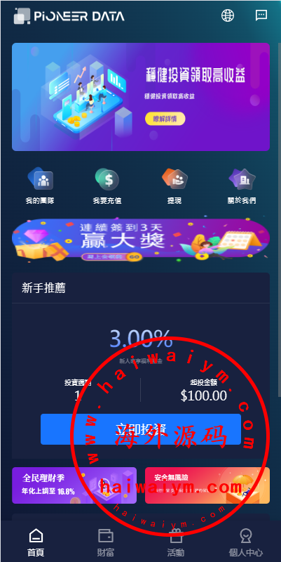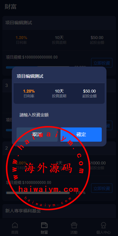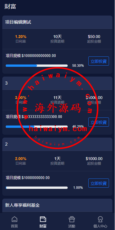 新版海外投资理财系统/理财投资分红系统/红包赠送
