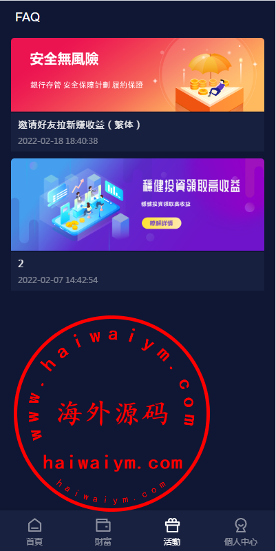 新版海外投资理财系统/多语言投资返利/IM社区/10级分销