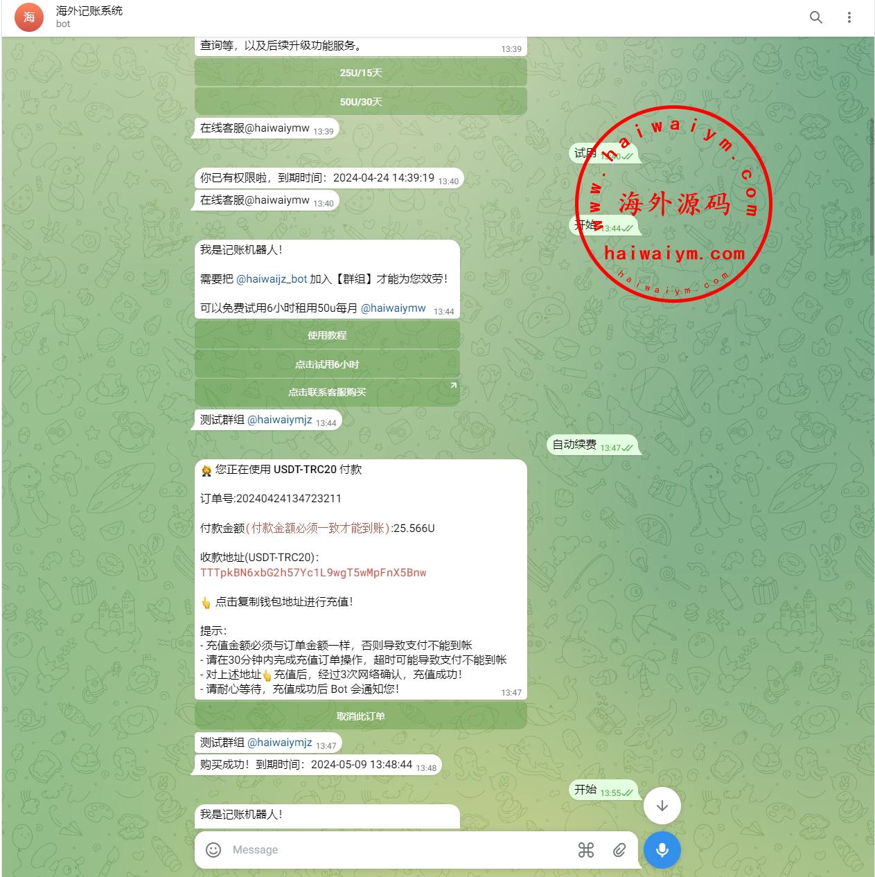 在线开通机器人 @haiwaijz_bot