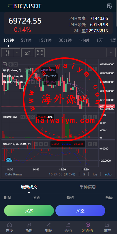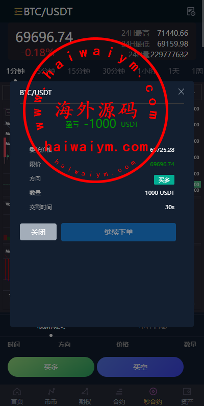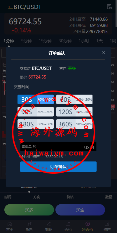 多语言虚拟币交易系统/秒合约交易/伪交易所/时间盘