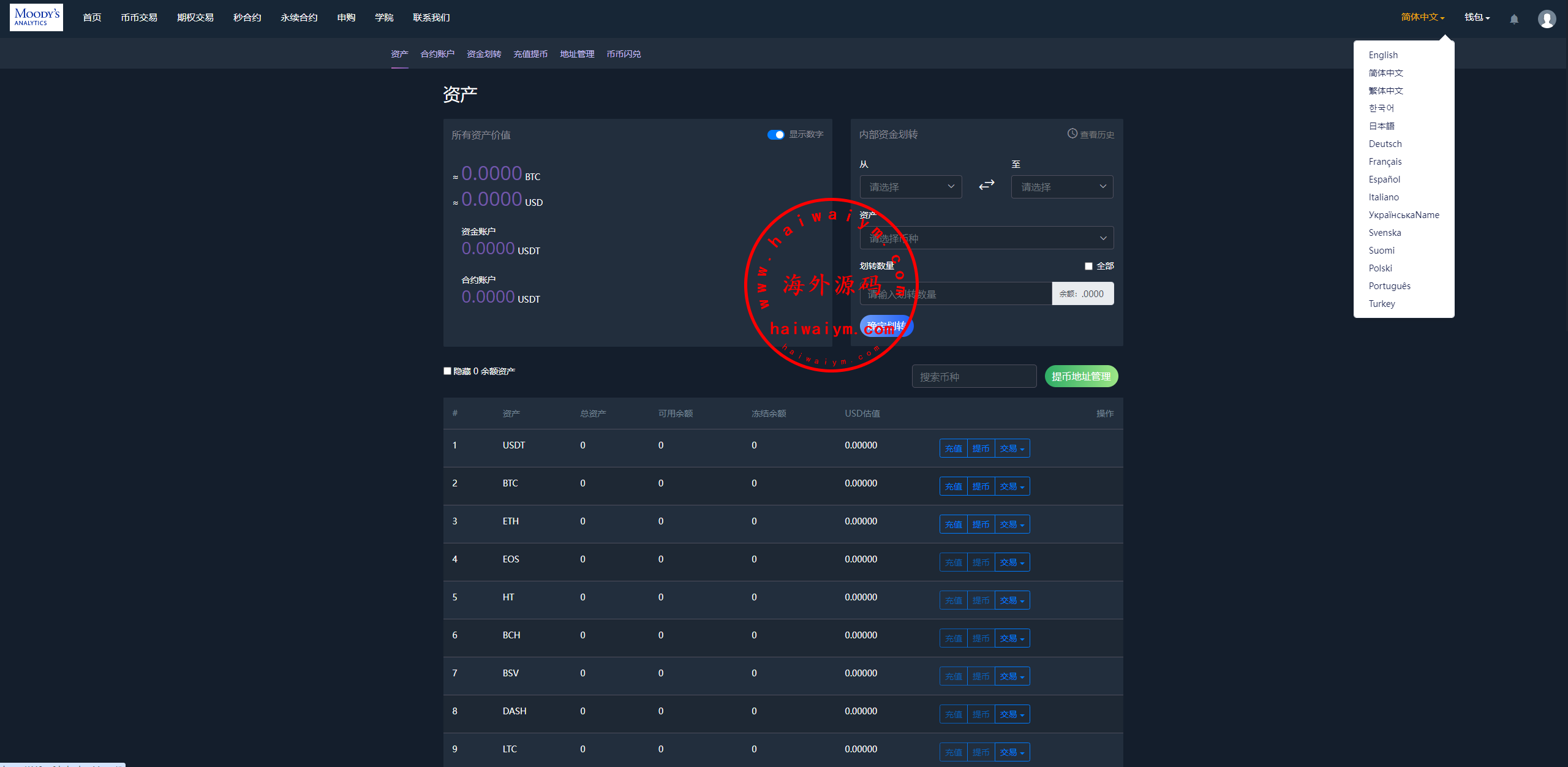 海外多语言交易所/合约/期权/秒合约/插针控制/申购