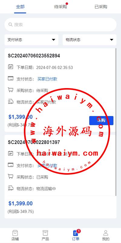 新版跨境电商系统/多语言商城/商家入驻/一键铺货后台下单