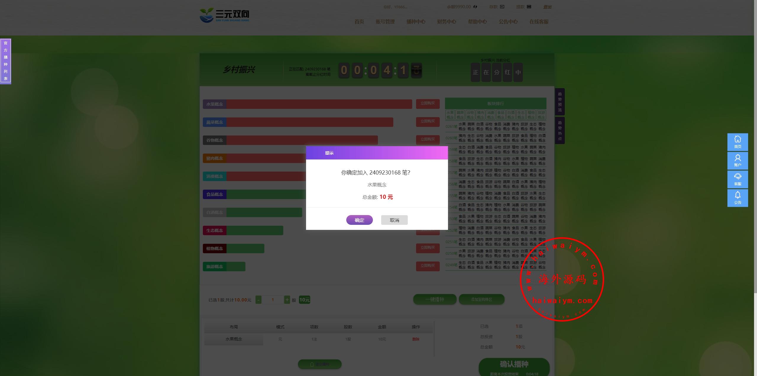 源码是彩票系统二开助农投资下注,带手机跟电脑端