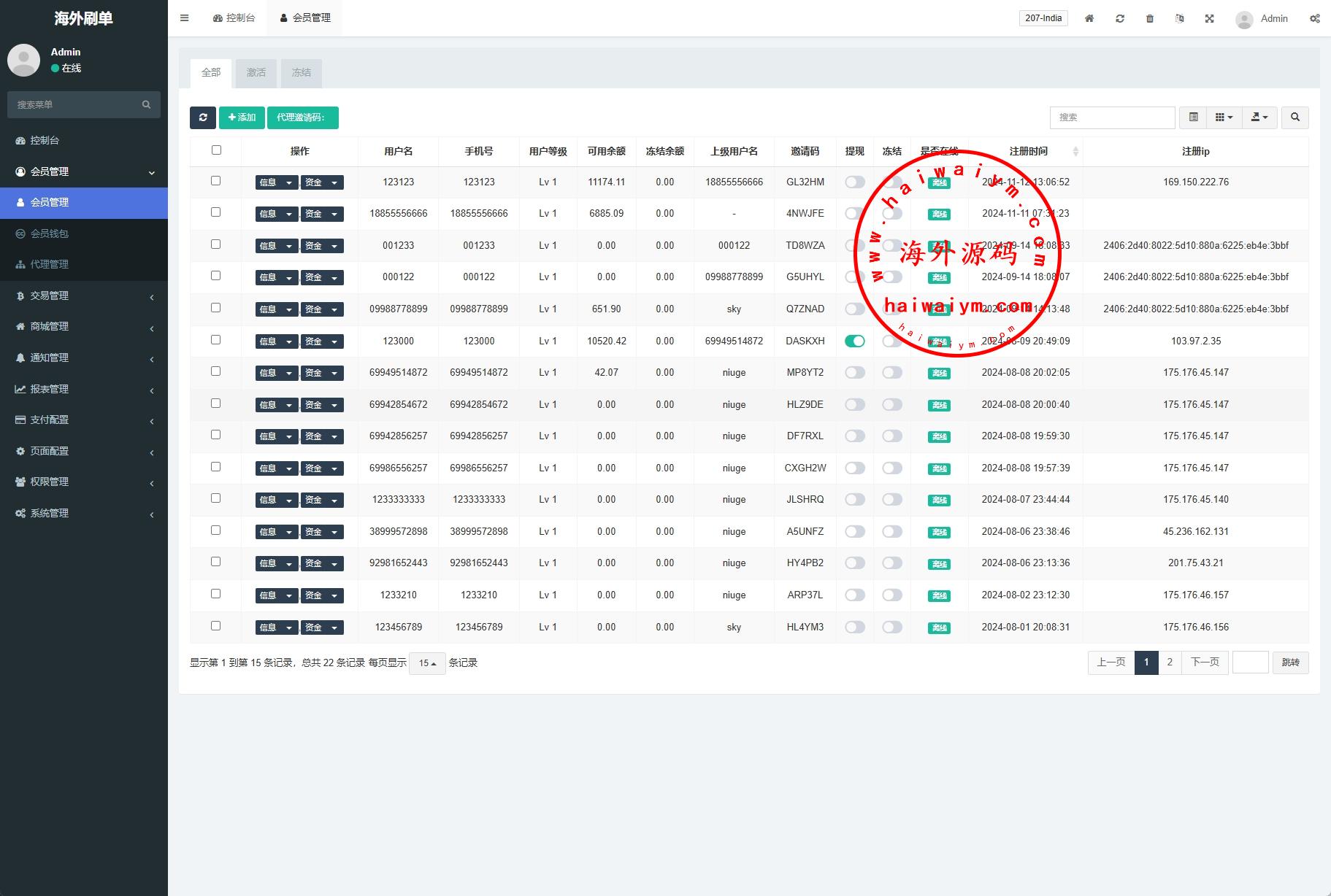 韩国抢单刷单系统/多语言刷单商城/打针/信用分/代理后台