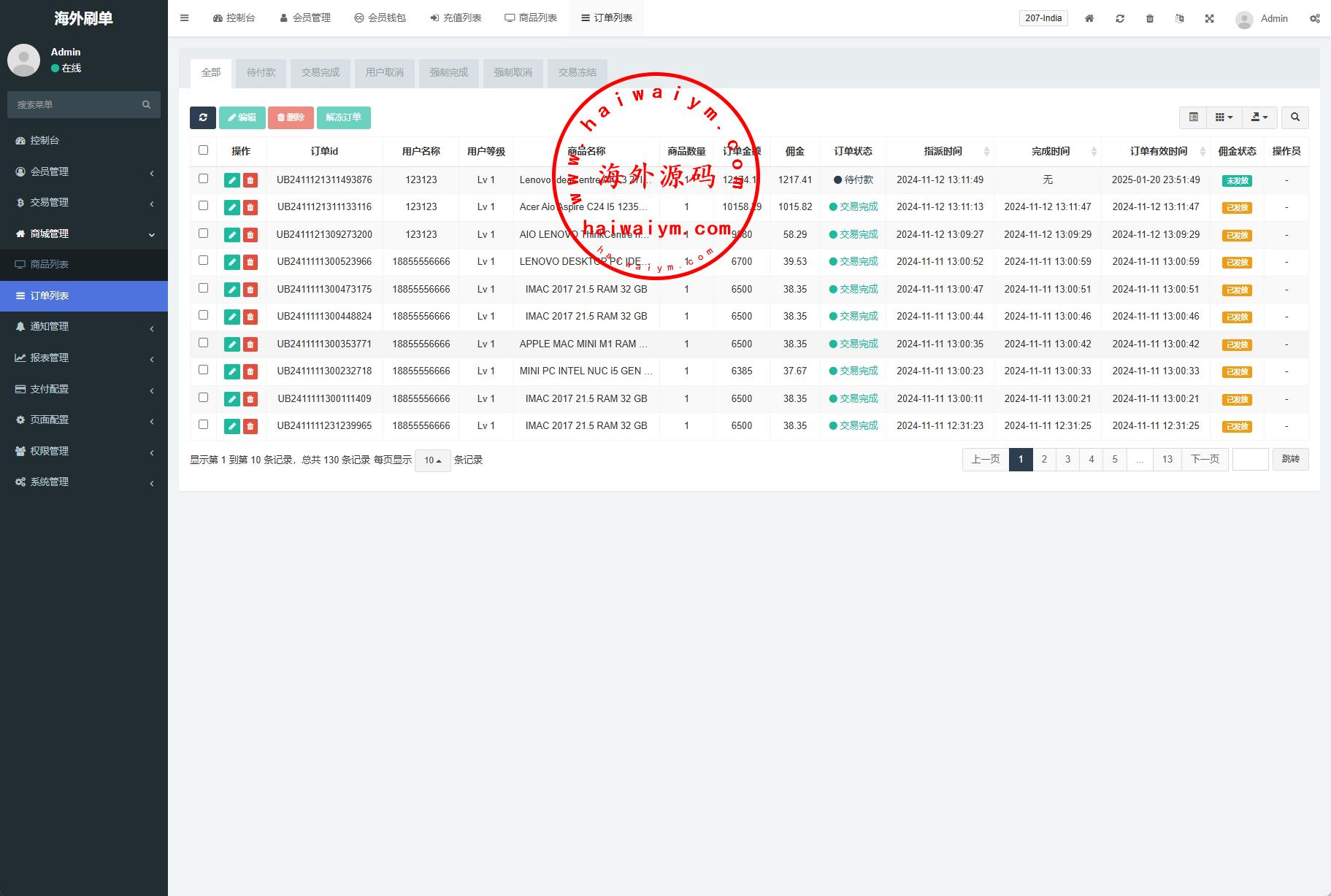 海外商城抢单刷单系统/预设订单/重置订单/签到