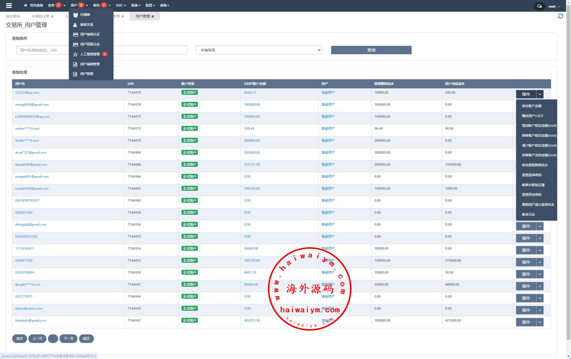 海外交易所系统/合约/期权/质押/秒合约/插针控制/申购