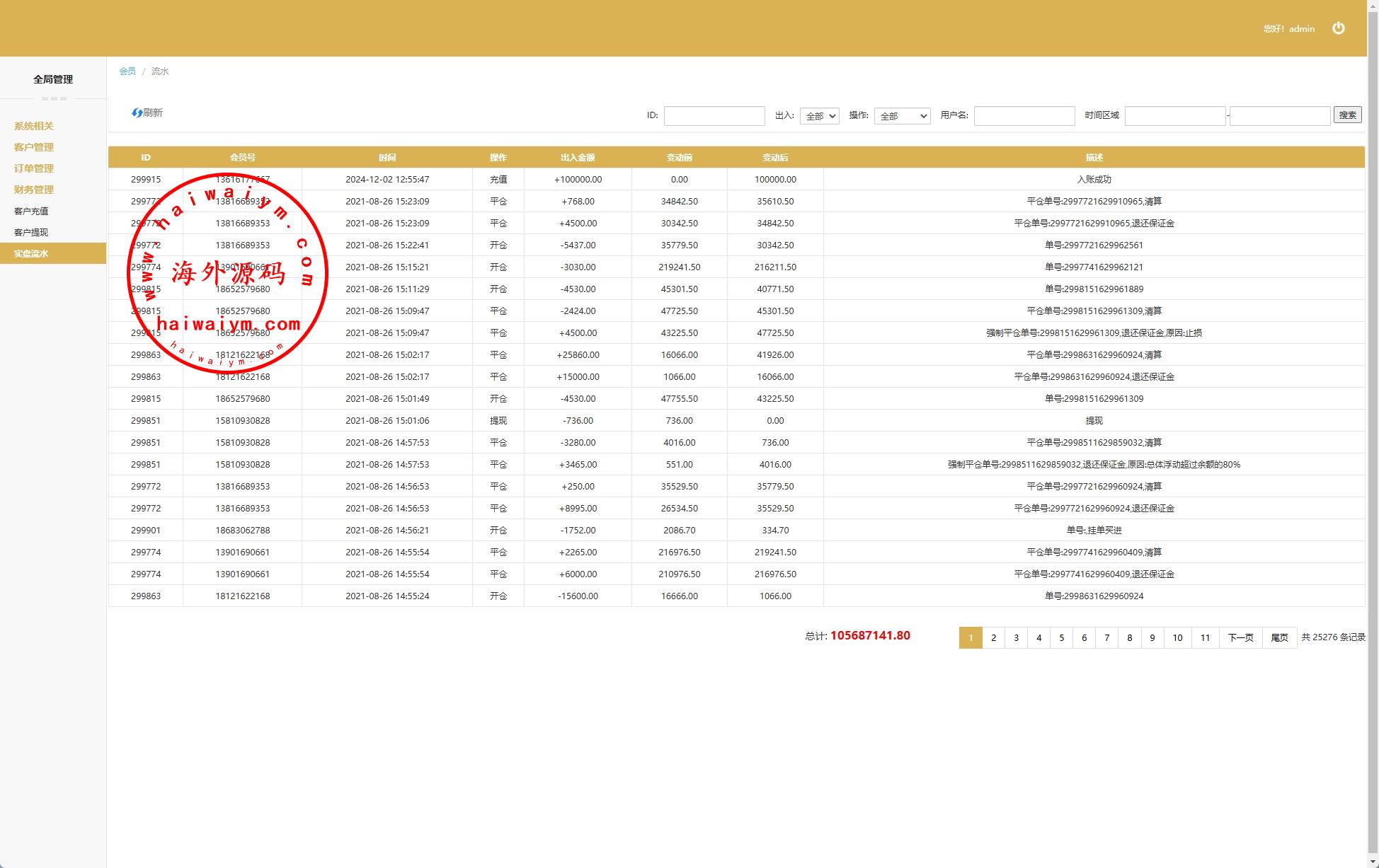海外交易所系统/合约/期权/质押/秒合约/插针控制/申购