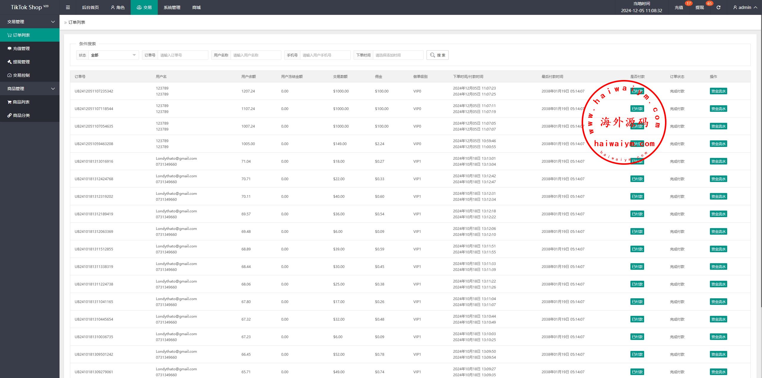 海外商城抢单刷单系统/预设订单/重置订单/签到