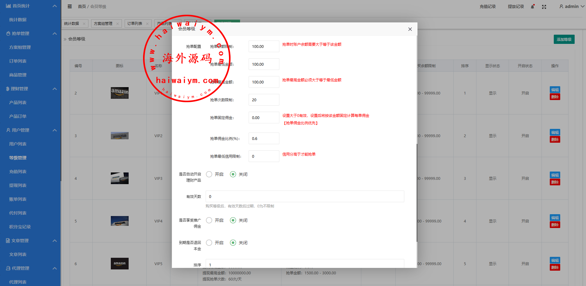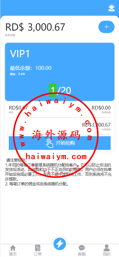 海外商城抢单刷单系统/预设订单/重置订单/签到