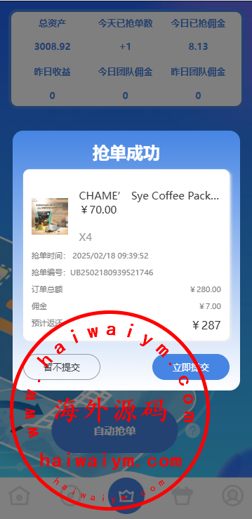 海外商城抢单刷单系统/预设订单/重置订单/签到